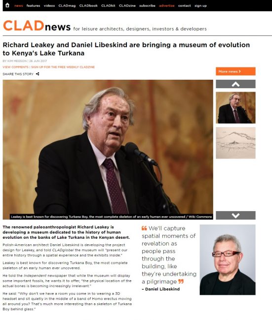 The renowned paleoanthropologist Richard Leakey is developing a museum dedicated to the history of human evolution on the banks of Lake Turkana in the Kenyan desert. Polish-American architect Daniel Libeskind is developing the project design for Leakey, and told CLADglobal the museum will “present our entire history through a spatial experience and the exhibits inside.”