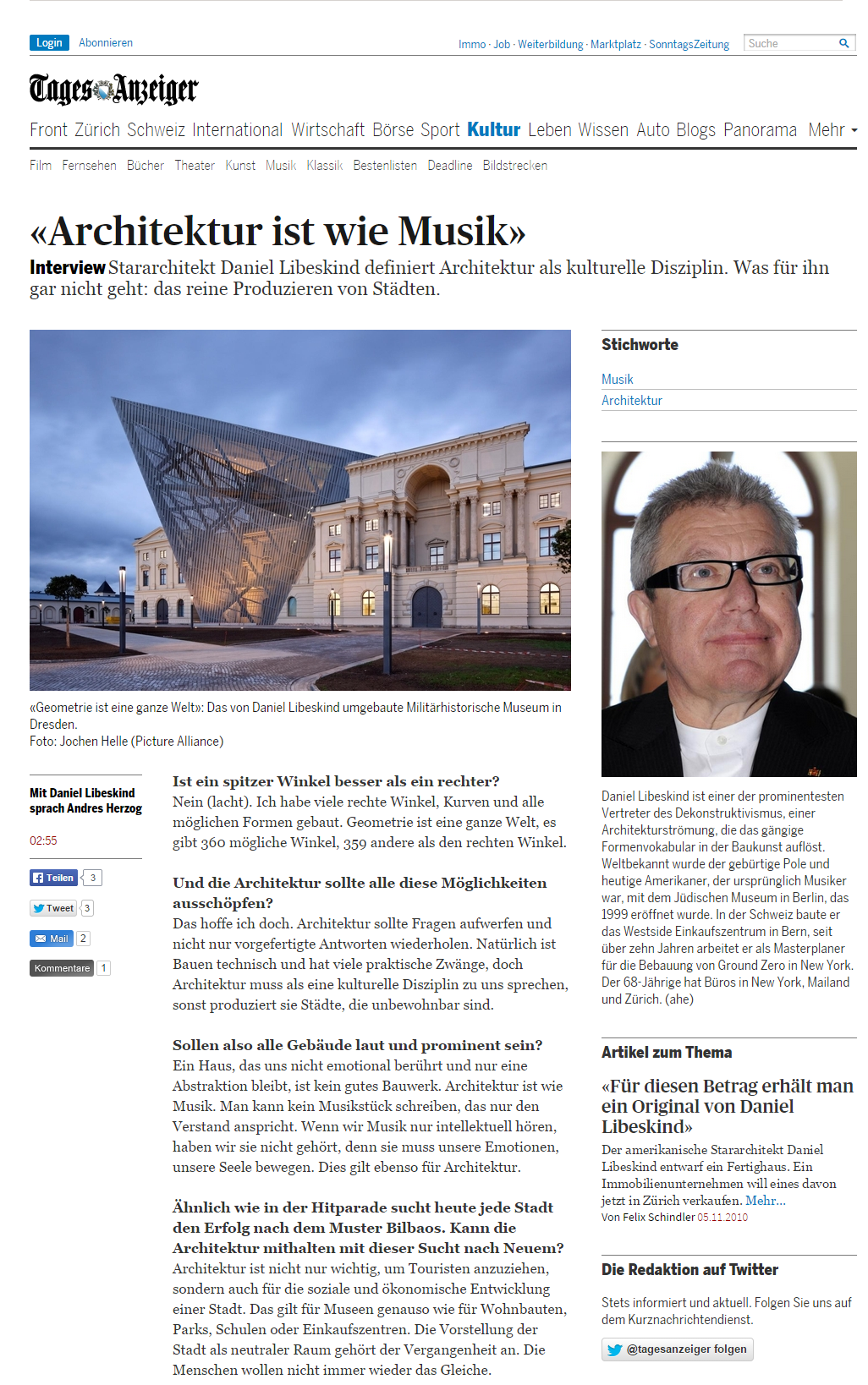 Daniel Libeskind Culture Feature “Architektur ist wie Musik”