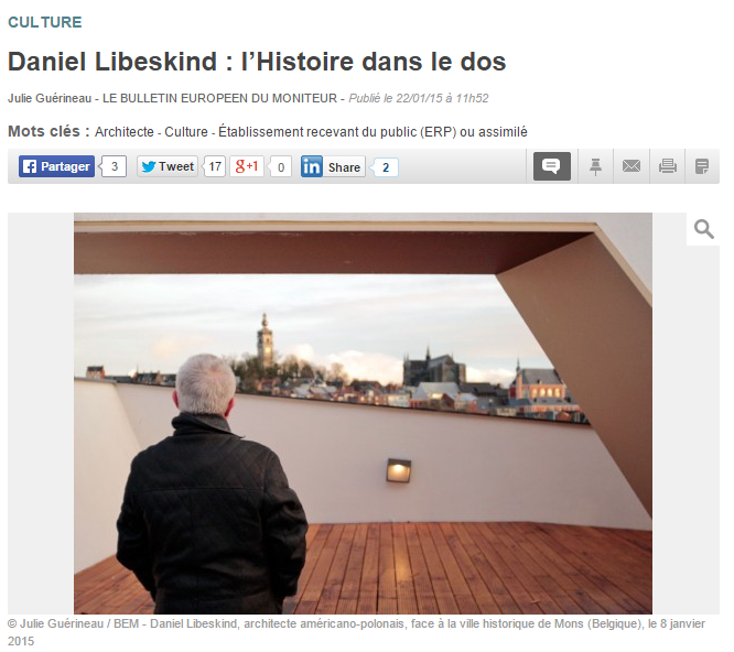 Daniel Libeskind : l’Histoire dans le dos Description Le Moniteur visits the Mons International Congress Xperience in Belgium on its press opening.