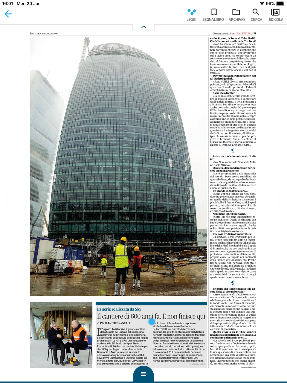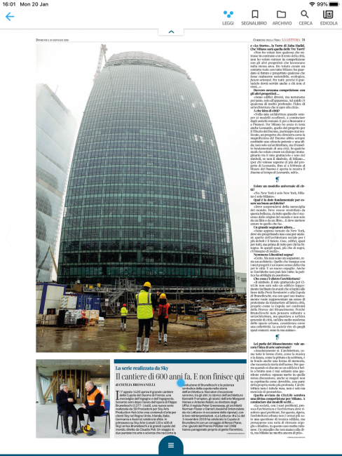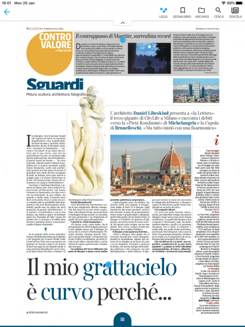 An interview with Daniel Libeskind on his inspirations for the third tower under construction at City Life Milan, that includes Italian masters Brunelleschi and Michelangelo.