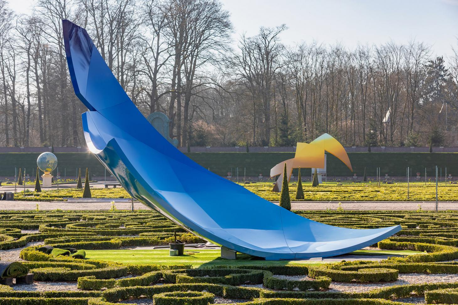 The ‘Garden of Earthly Worries’ consists of four monumental abstract sculptures that create an imbalance within the organised layout of the baroque garden, designed in its time to represent man’s perfection of nature.