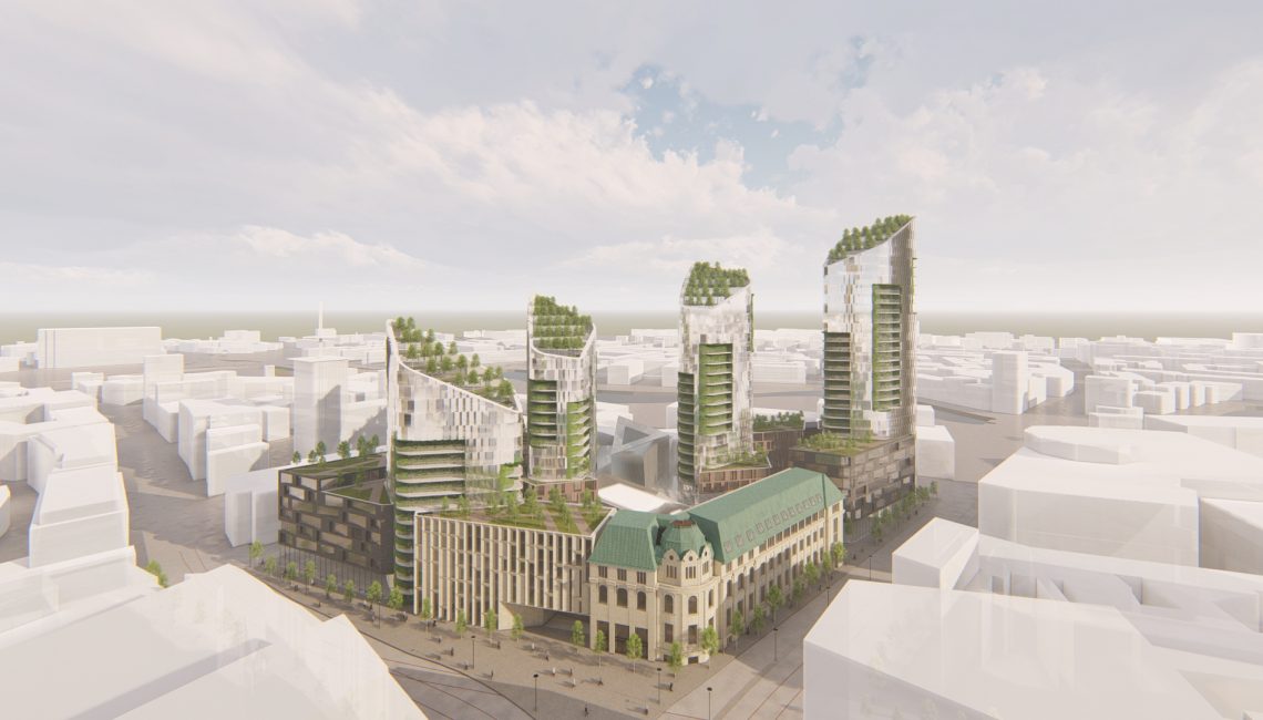 Four different high towers are proposed in front of the Sparkassen-area Description In Bremen, Germany, a new design by Studio Libeskind consisting of four towers was presented to the public.