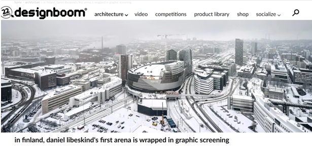 In Finland, Daniel Libeskind’s First Arena is Wrapped in Graphic Screening Description The Nokia Arena is sited atop of Tampere’s railway tracks in the heart of the city.