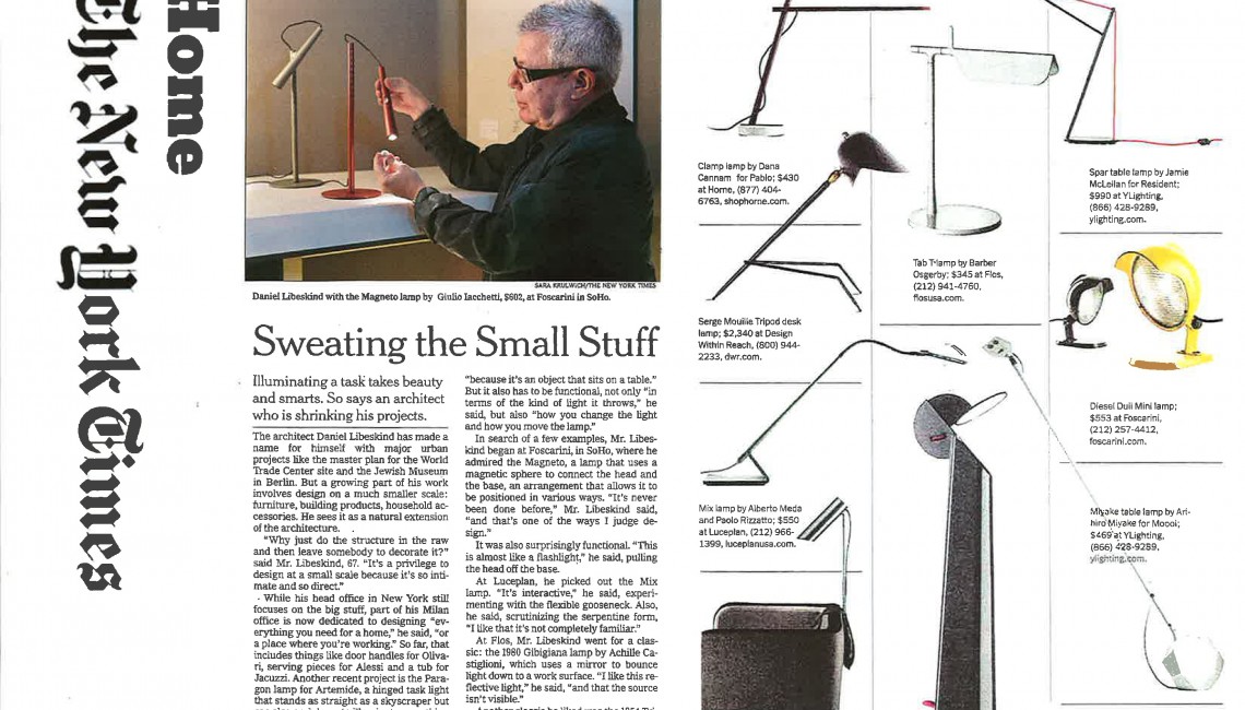 Architect Daniel Libeskind has made a name for himself with major urban projects like the master plan for the World Trade Center site and the Jewish Museum in Berlin. But a growing part of his work involves design on a much smaller scale: furniture, building products, household accessories.