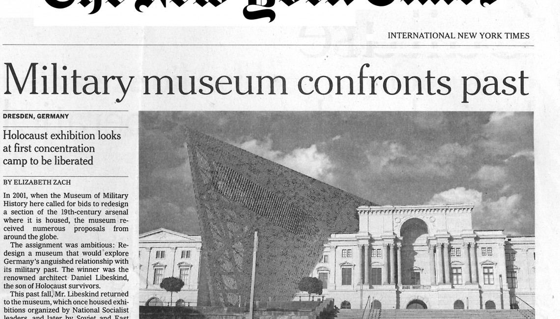 Elizabeth Zach, New York Times, interviewed Daniel Libeskind for the two-year anniversary of the Military History Museum in Dresden.