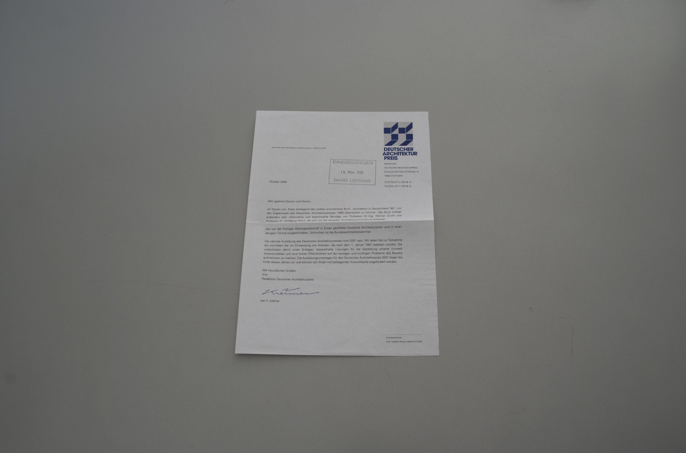 Architektur in Deutschland Description German Architecture Prize catalog awarded to Daniel Libeskind 1999. Deutscher Architektur Preis