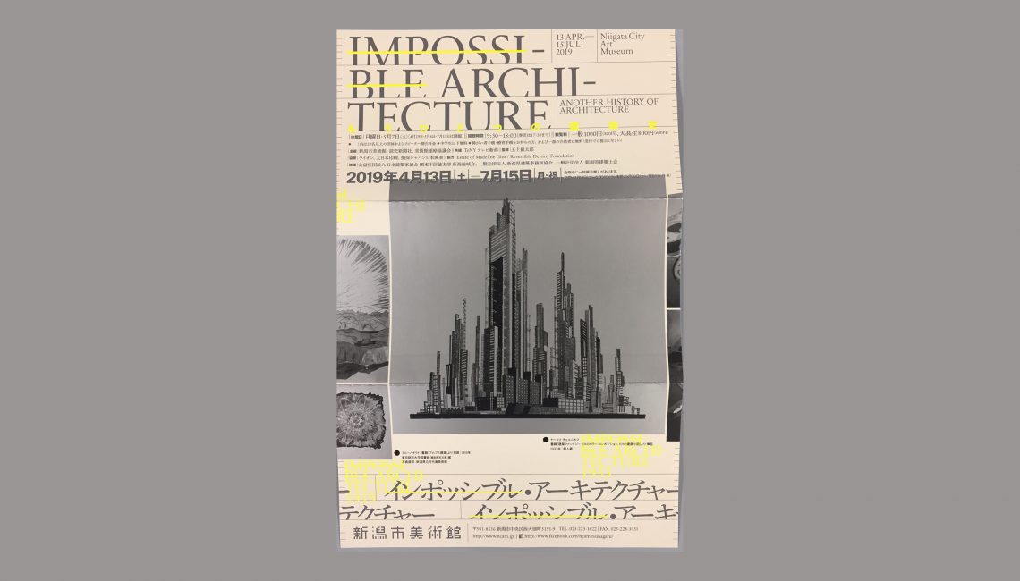 This exhibition looks at what became “impossible,” focusing on unfinished architecture in Japan and overseas from the 20th century and beyond. Blueprints and scale models by 40 architects and artists are on show, including Makoto Aida, Tadao Ando, Archigram, ARAKAWA + Madeline GINS, Yakov Chernikhov, Yona Friedman, Sou Fujimoto, Mark Foster Gage, Pierre Jean Giloux, John Hejduk, Hans Hollein, Junya Ishigami, Arata Isozaki, Renshichiro Kawakida, Kiyonori Kikutake, Kisho Kurokawa, Daniel Libeskind, Kunio Maekawa, Ludwig Mies van der Rohe, Takehiko Nagakura, Constant Nieuwenhuys, Taro Okamoto, Cedric Price, Seiichi Shirai, and Bruno Taut to name a few.