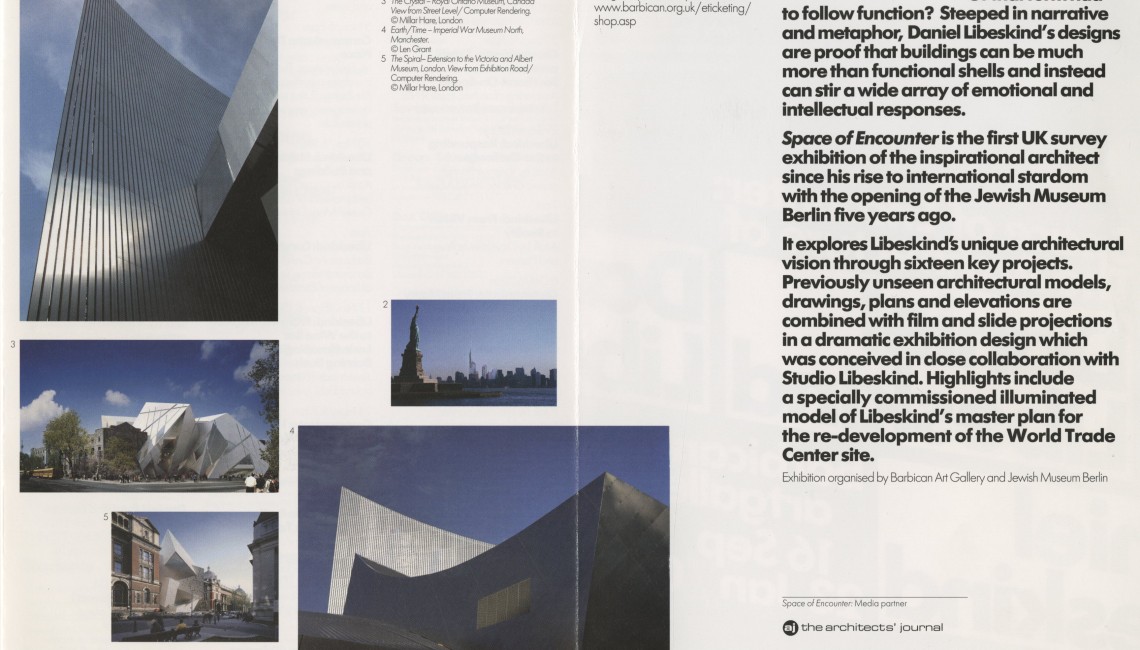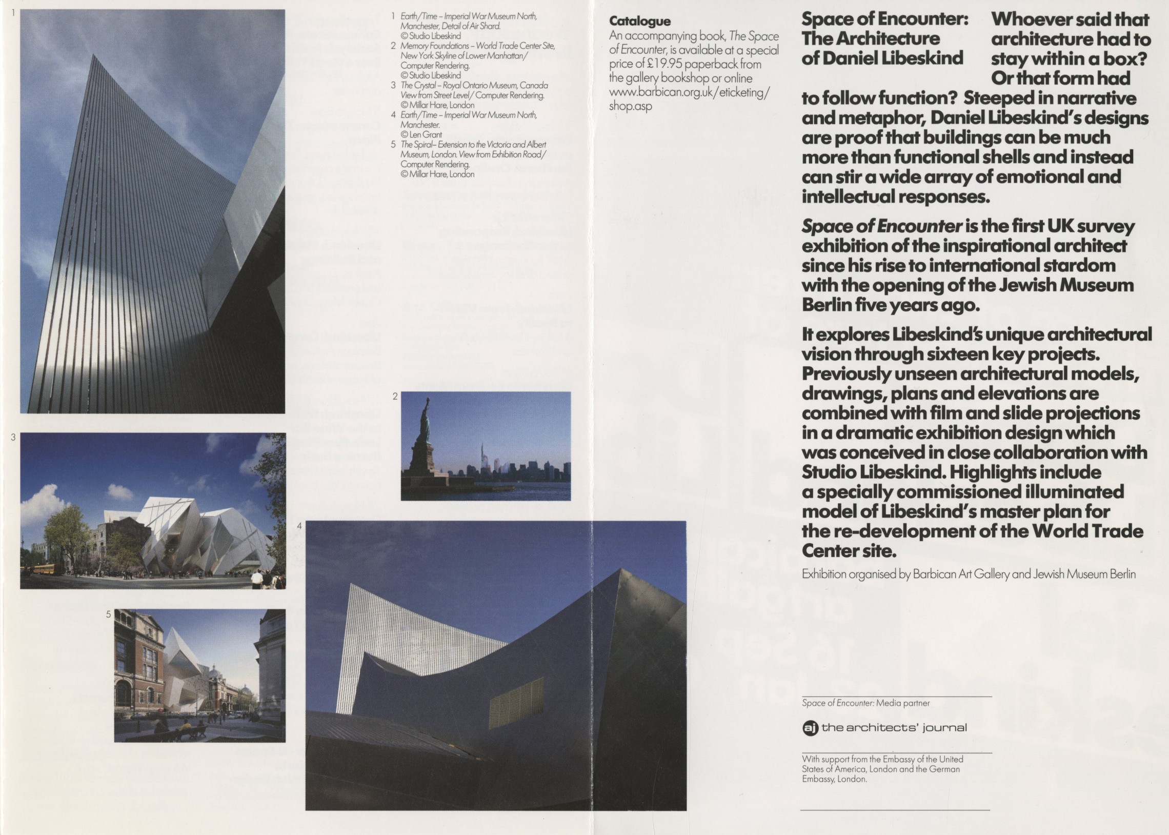 Space of Encounter: The Architecture of Daniel Libeskind. Barbican Art Gallery, London, England, 2005