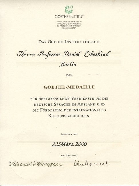 The Goethe Medal for cultural contribution