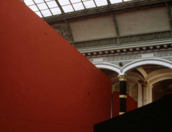 The exhibition design allowed visitors to evaluate and orient the works on display that were created in the first part of the century and represent the strong cultural exchange between Russians in Berlin or Berliners in Moscow.  The design, consisting of two powerful wedges that are inserted within the main atrium of the museum, represents resistance, social struggle and the creat act to stand out against the exhilaration and barbarism of the times.  The space open between the wedges provided an area for gathering and events associated with the exhibition. “I see this as a space opened between those two…
