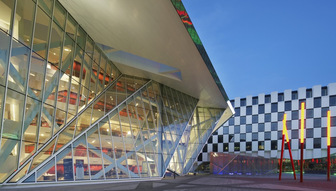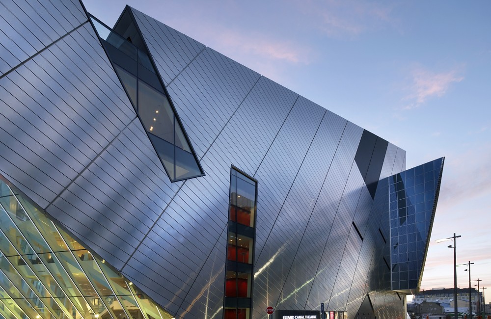 “The opening of Daniel Libeskind’s new Grand Canal Theatre, (in Dublin, Ireland) a razzle dazzle production in its own right, threatened to upstage the gentle ballet on the building’s main stage. With its dramatic, four story glass facade, sharply angled roof line, and turbulent diagonal lines, the debut of Libeskind’s latest creation was a major cultural happening for Dublin…” – Fast Company (March 2010)