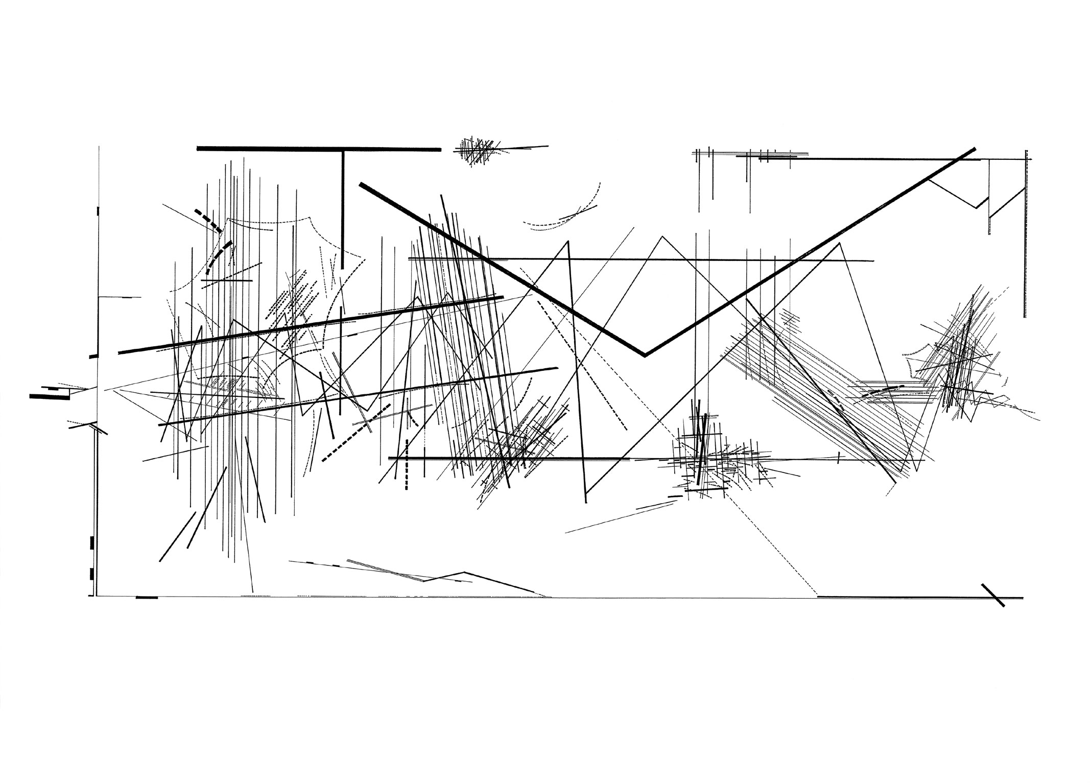 This set of 28 drawings was created by Daniel Libeskind during the years in which he served as the head of the Architecture Department at Cranbrook Academy of Art in Bloomfield Hills, Michigan. The drawings explore the relationship between music and architecture in an architectonic and graphic point of view and have been influential in his later designs.