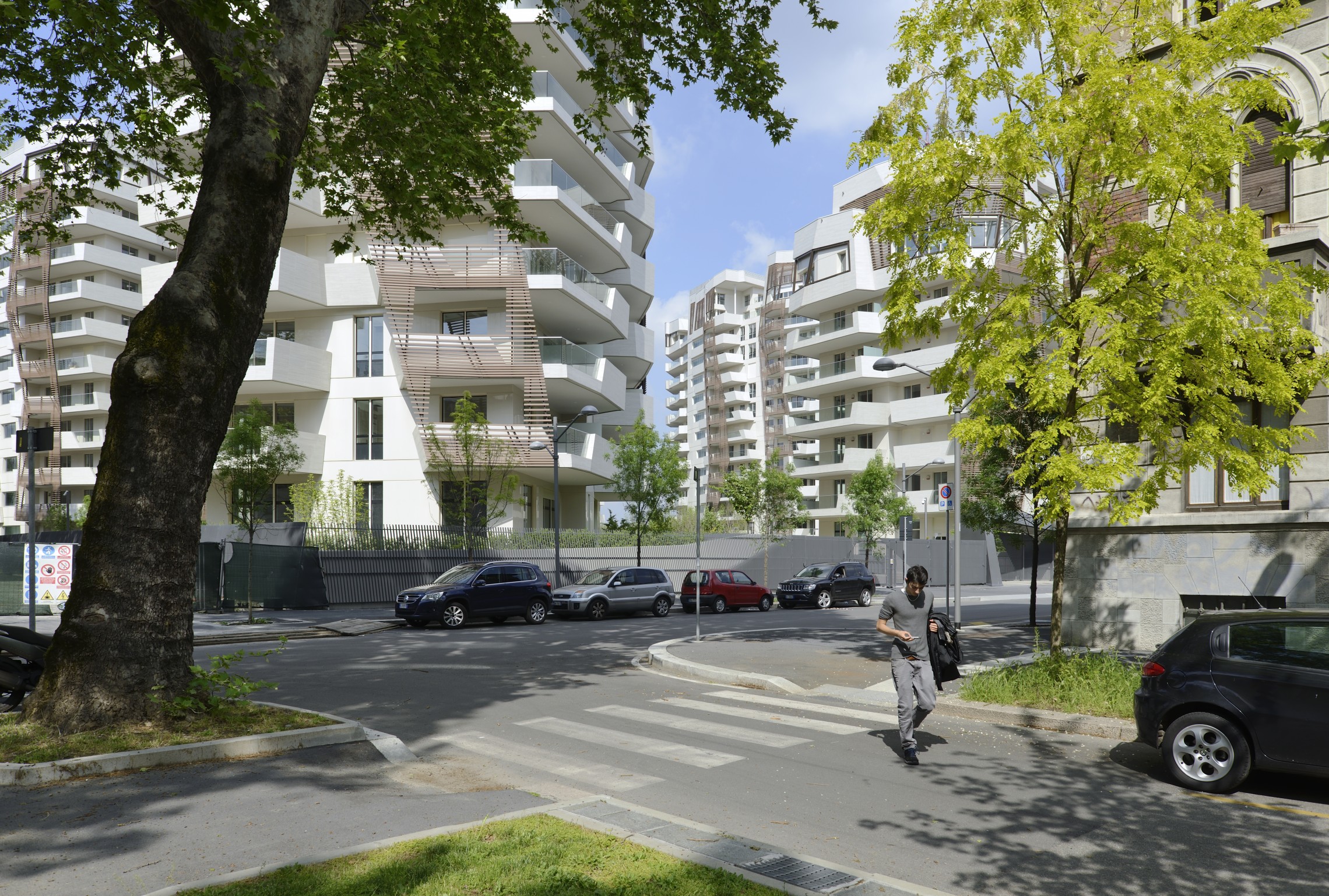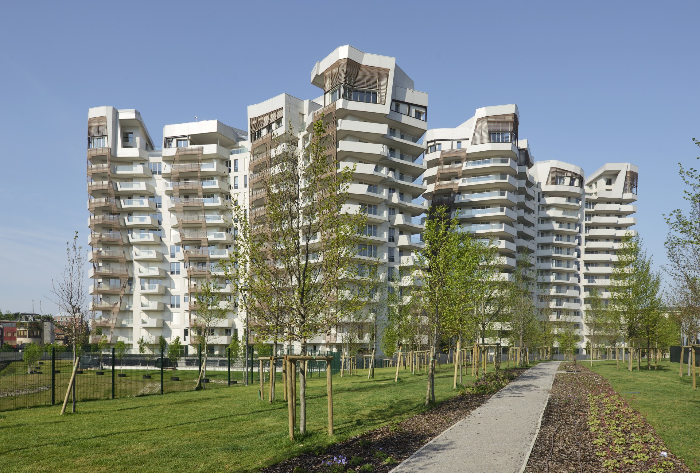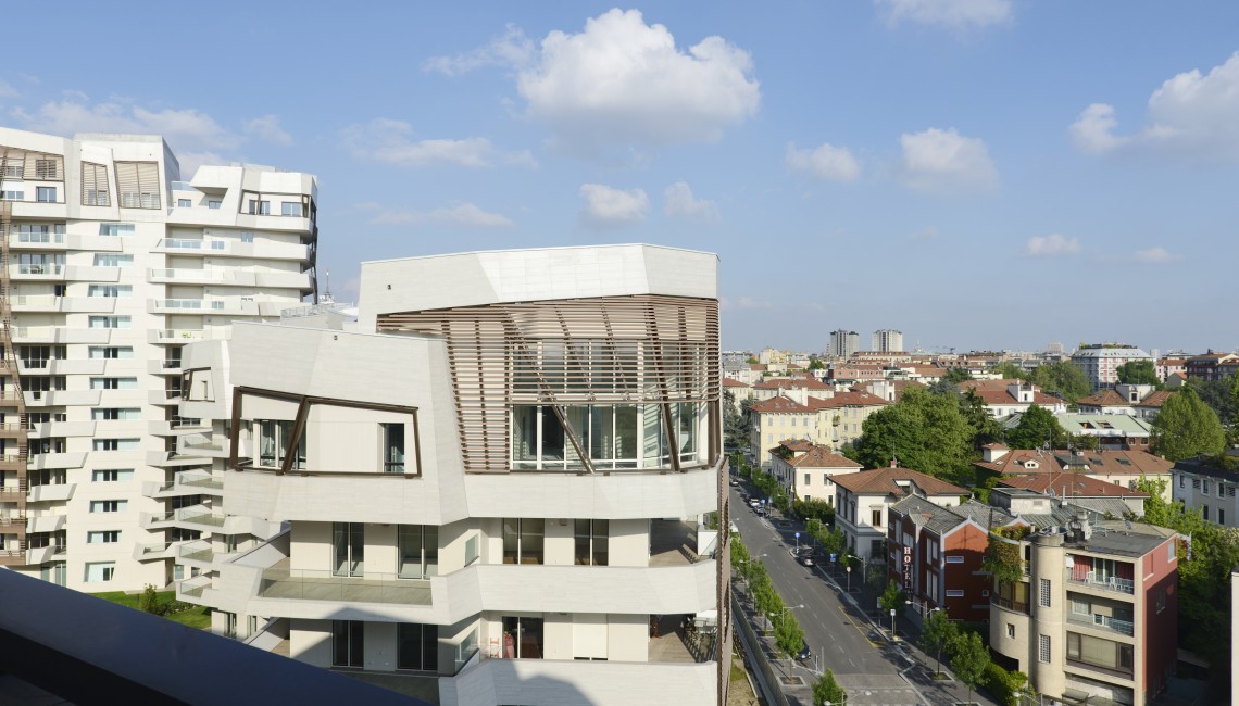 The residences designed by Studio Libeskind employ the classical courtyard configuration and naturalistic materials of an historic Milanese neighborhood, while presenting an asymmetrical layering of the façade. The residential buildings are sited on the perimeter of the site to the south and rise towards the park to the north.