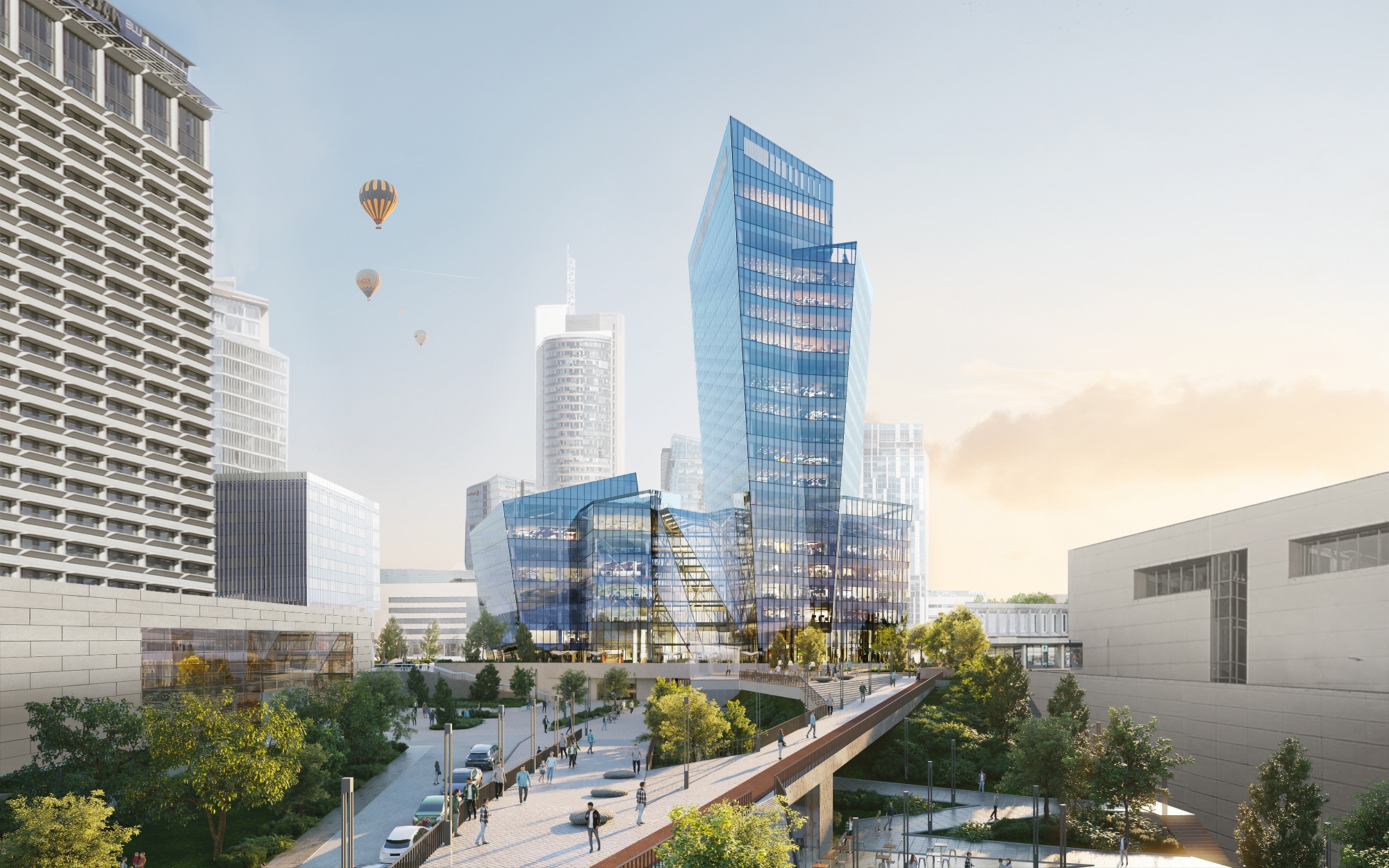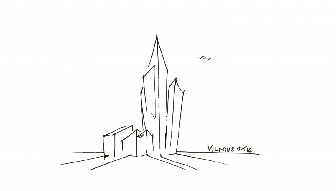 Artery is a harmonious progression of glass volumes that consists of an 18-story tower, set atop a 6-story podium that are connected by a luminous glass-covered galleria. The tower responds to the “urban hill” concept in the business district—its massing is regulated with the sequential growth of neighboring towers, creating a harmonious urban composition. The geometry creates a unique expression enriching the city skyline and improving its multi-dimensionality. The bold, sculptural design of this multi-faceted glass tower reflects the light, sky and Lithuanian surroundings with a play of transparent and opaque surfaces.