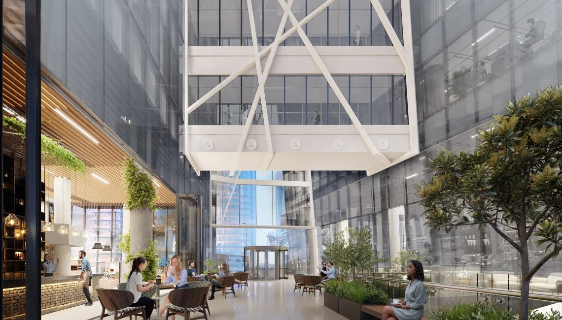 The ground floor contains the public facilities, including the twin lobbies for the hotel and office tower, retail spaces, a restaurant, and a bar. The first 6 floors of the podium house the hotel of about 260 rooms. Floors 7-18 house approximately 9,500 square meters of Class A office space.