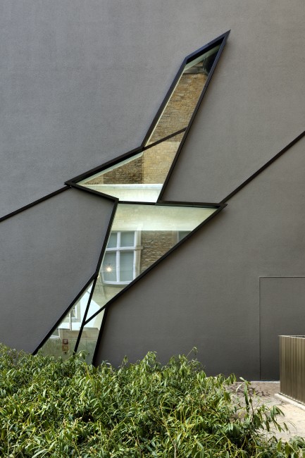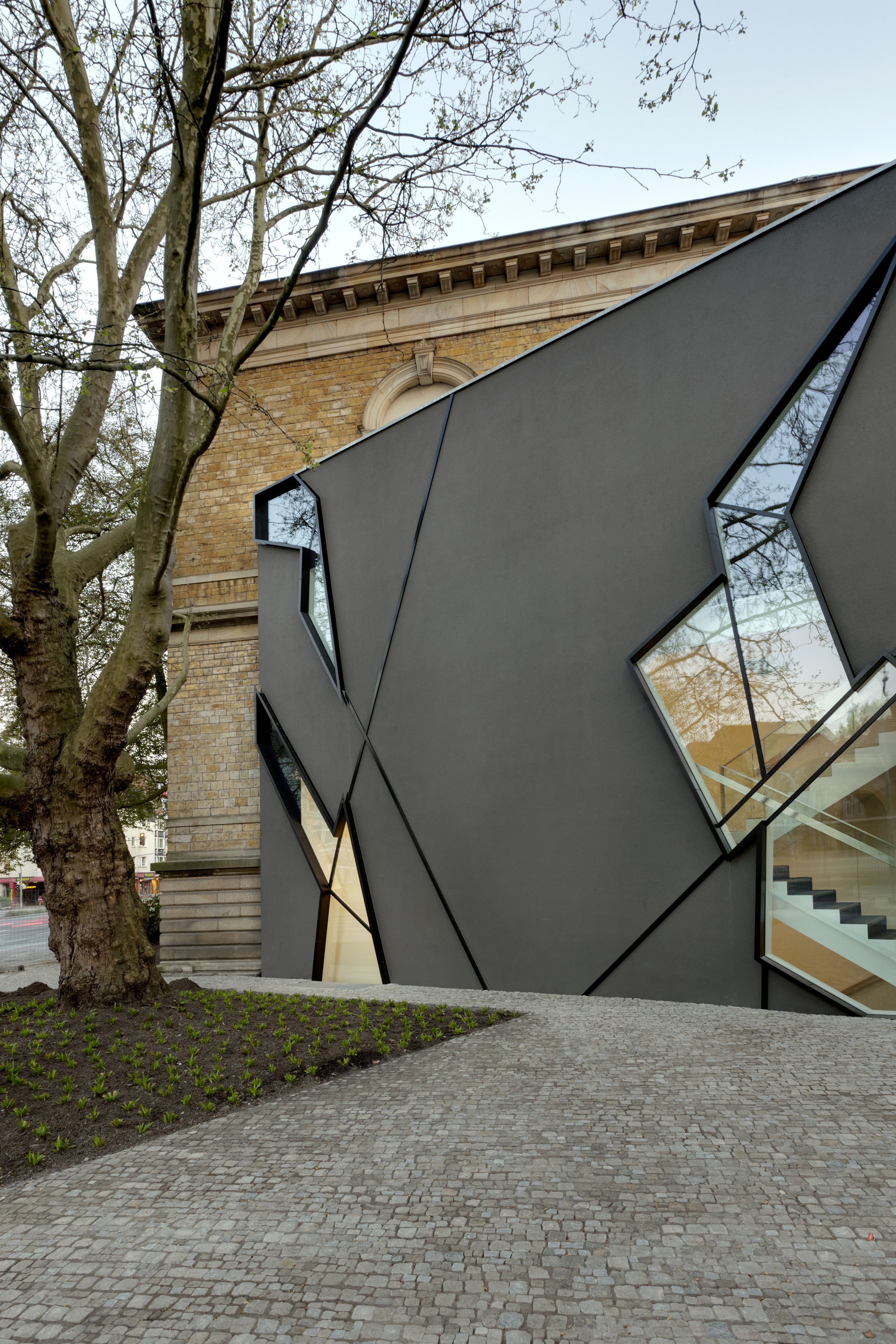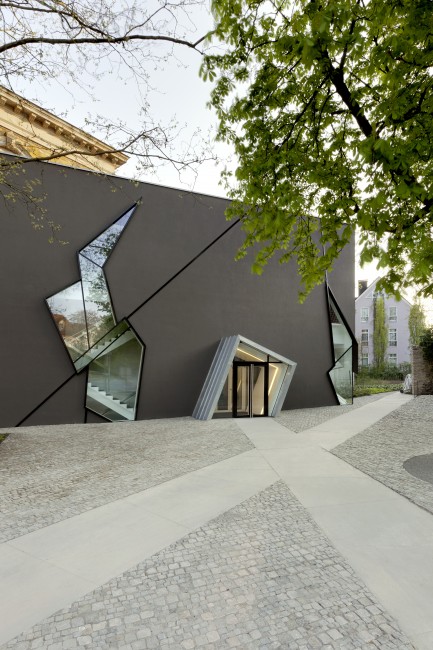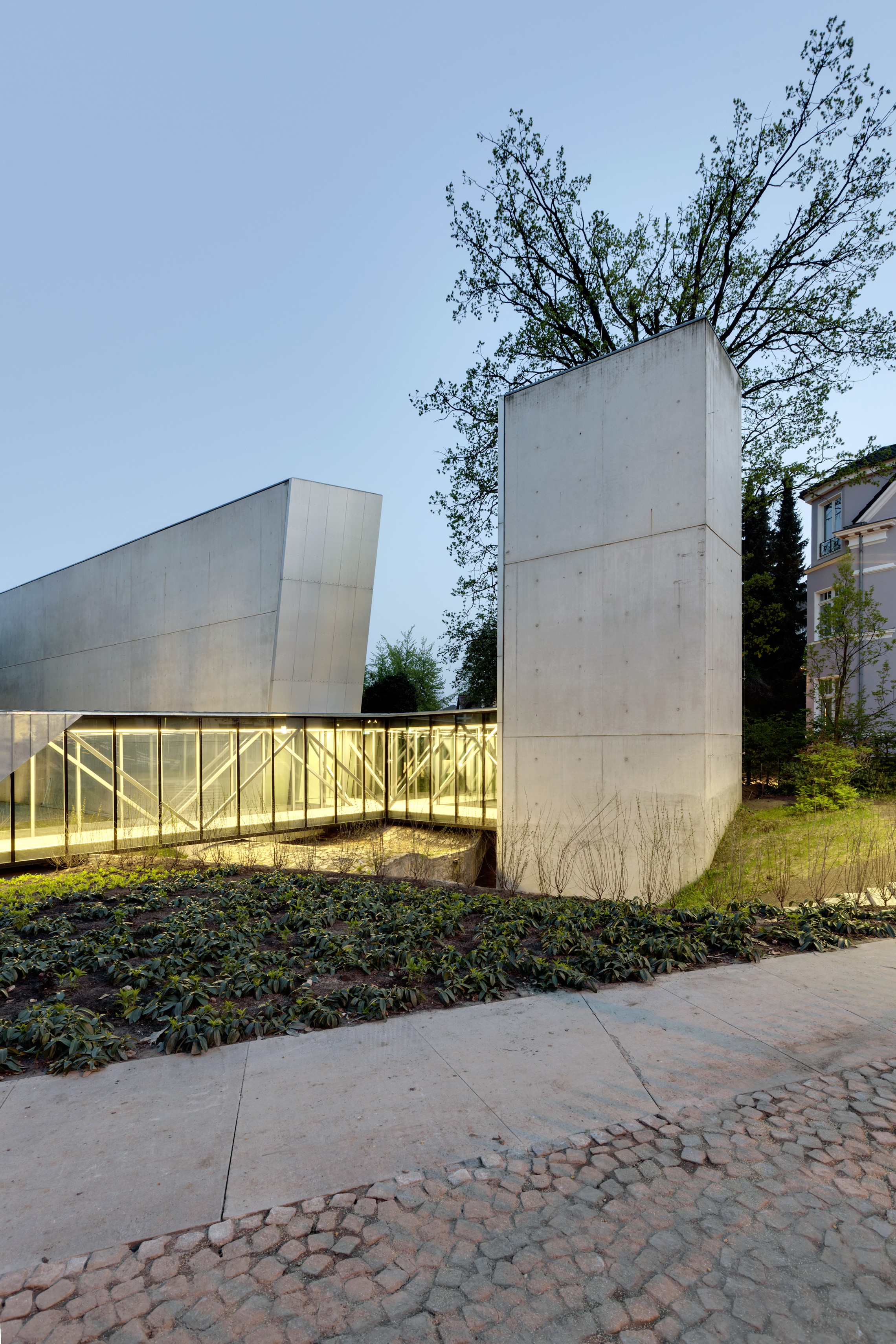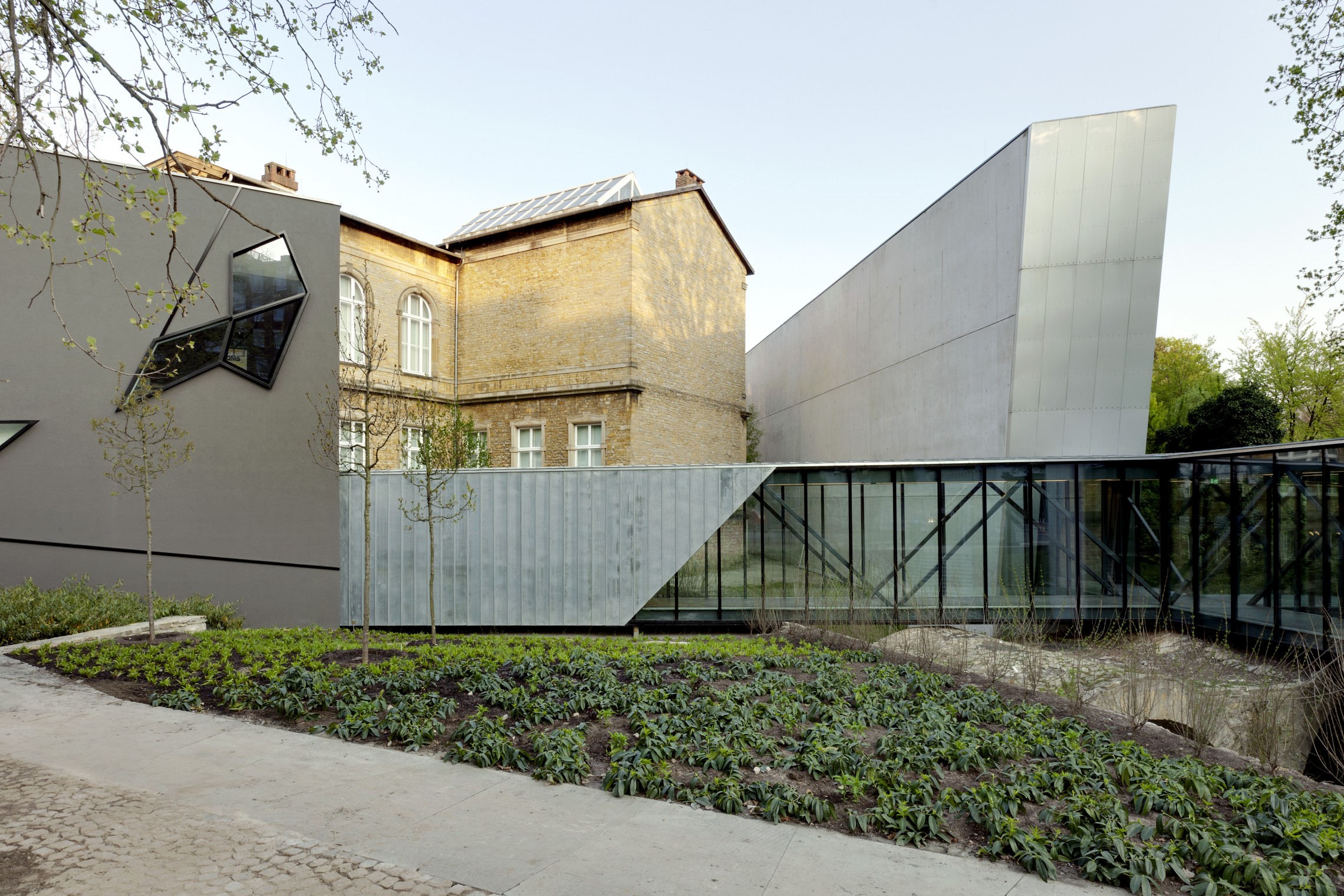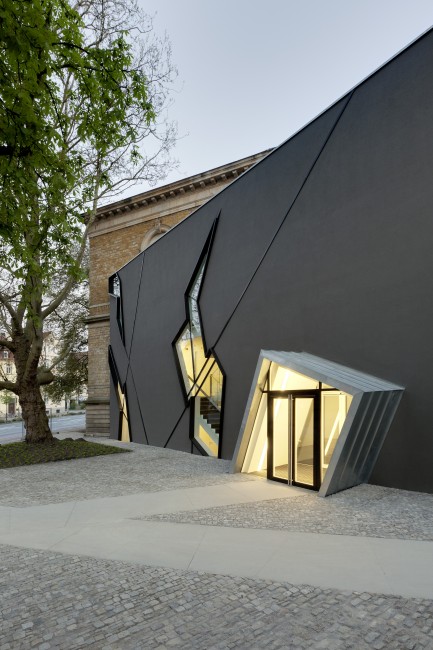Attached to the Kunstgeschichtliche Museum and connected to the Felix Nussbaum Haus by a glass bridge, the new building transforms the existing buildings into a cohesive complex by acting as a gateway. Studio Libeskind employed grey plaster and anthracite frames to harmonizes with the existing buildings and create a seamless ensemble. The extension appears less as an additional element as it does a prism from which the original Libeskind-designed building is refracted from and onto the Kunstgeschichtliche Museum.