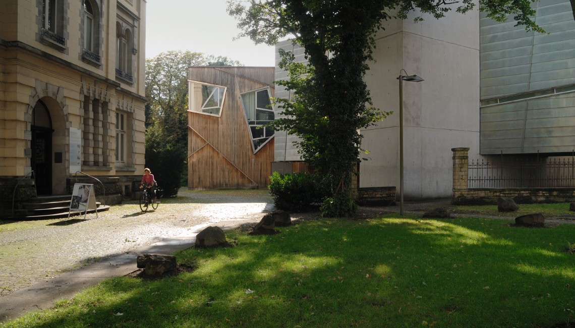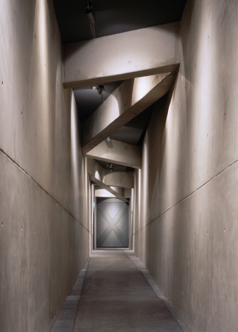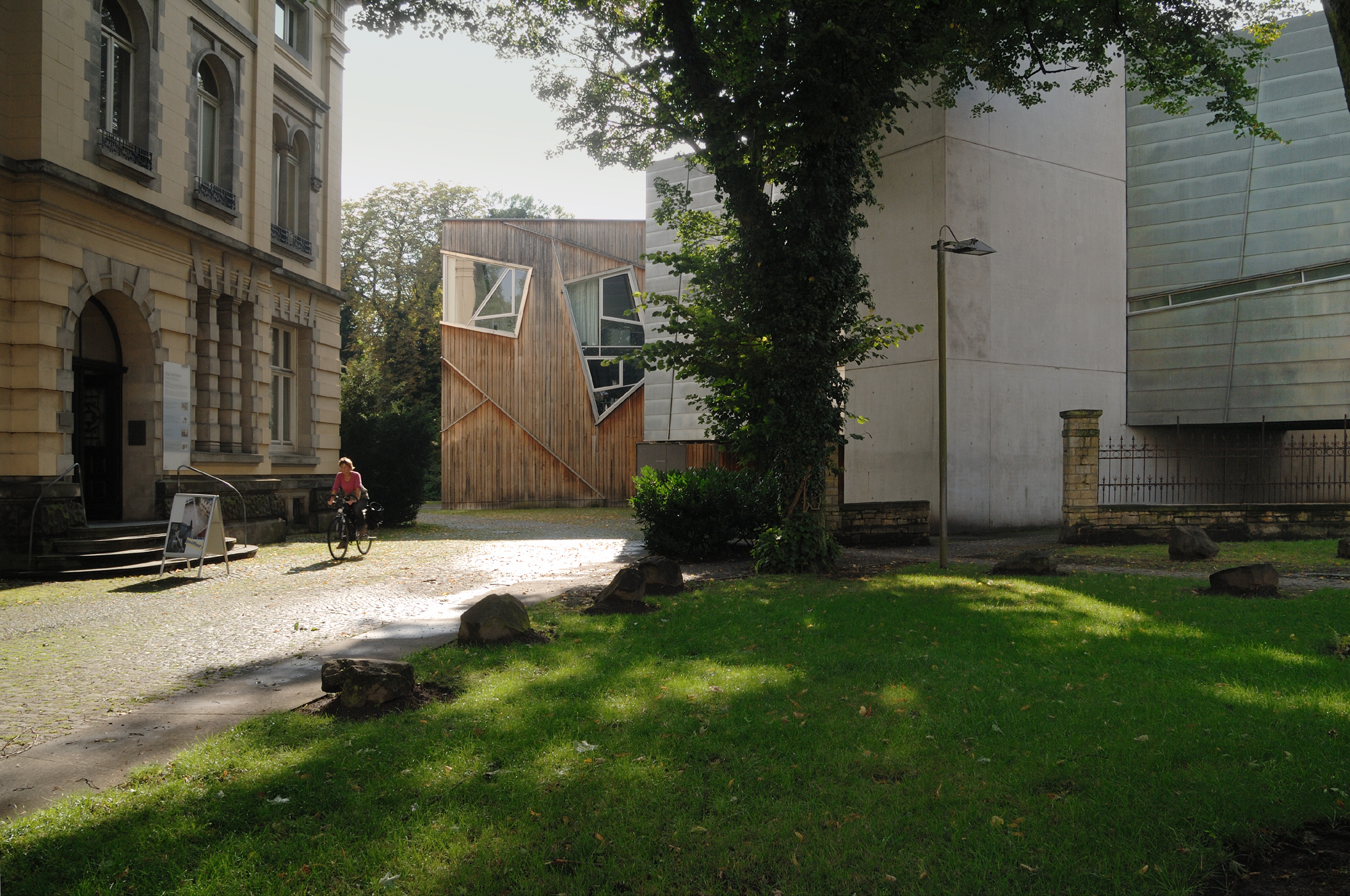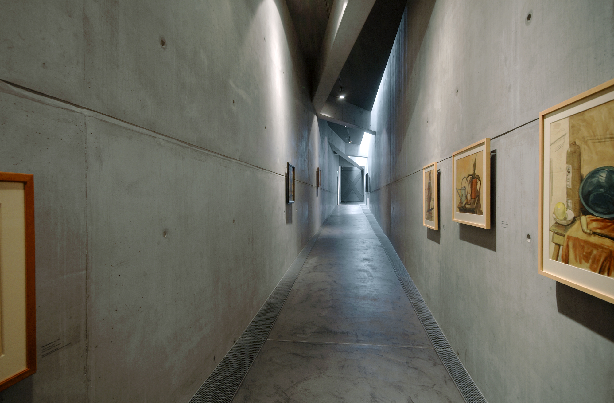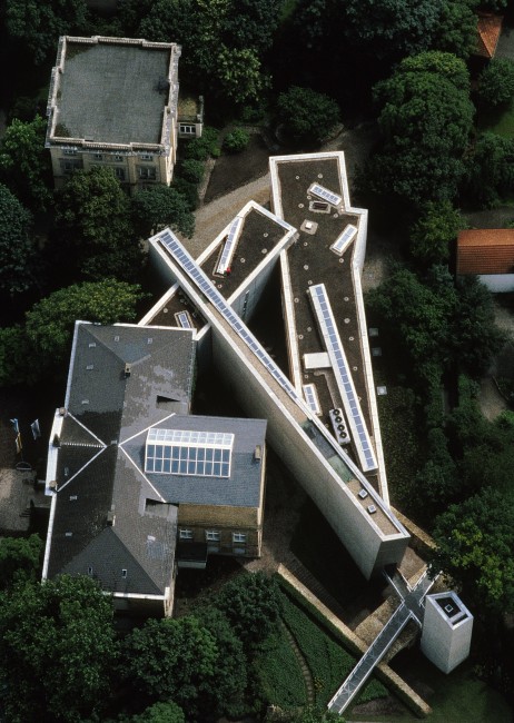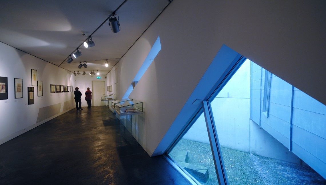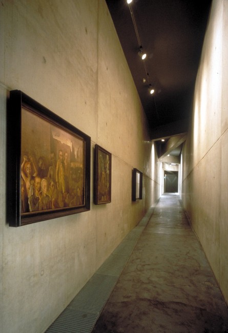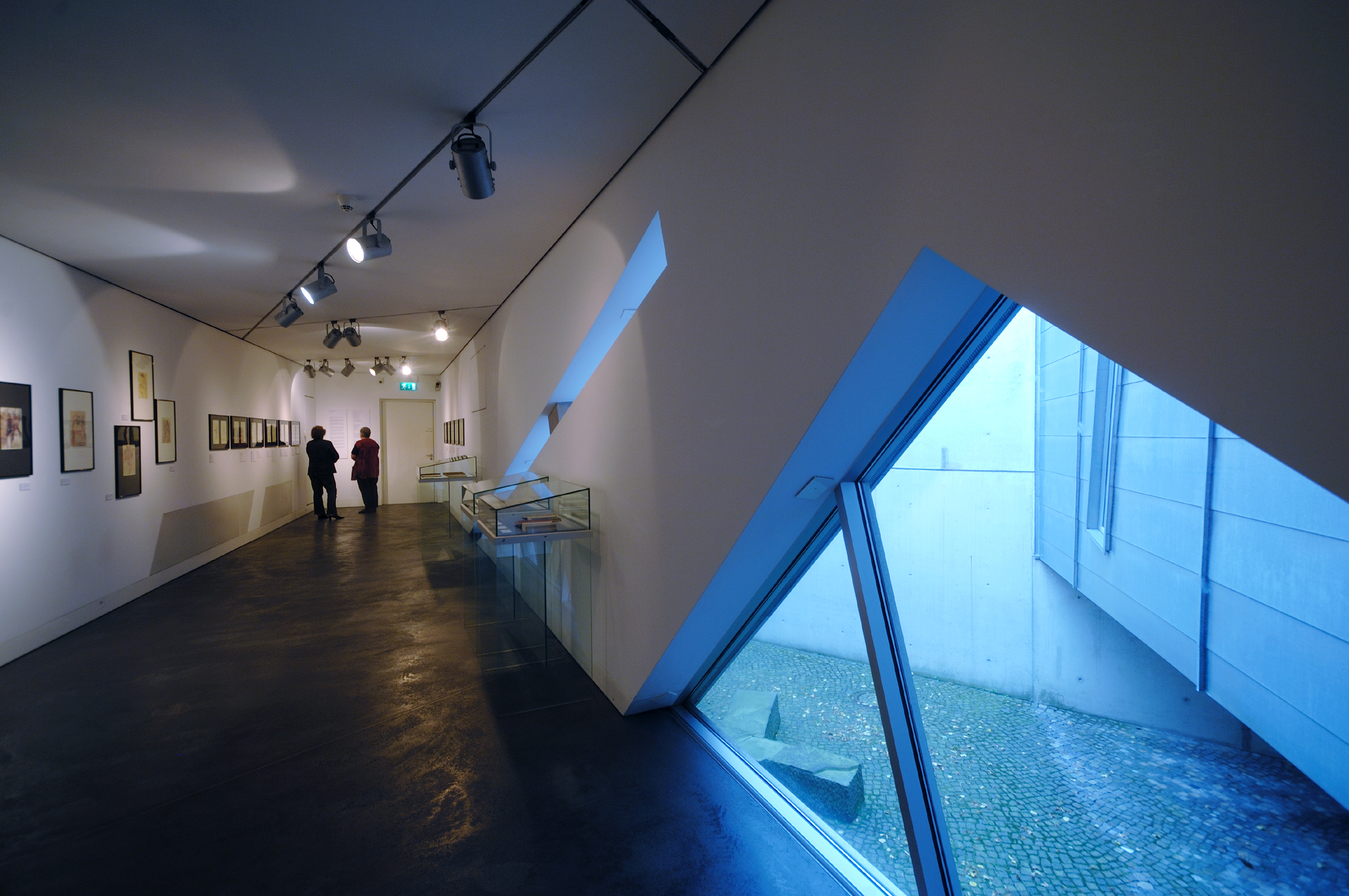 With sudden breaks in its pathways, unpredictable intersections, claustrophobic spaces, and dead ends, the structure of the building reflects the Nussbaum’s predicament as a Jewish painter in Germany before WWII. The museum is composed of three interconnected structures, each referencing a different temporality in Nussbaum’s existence and pointing in the directions of important locations in his life.