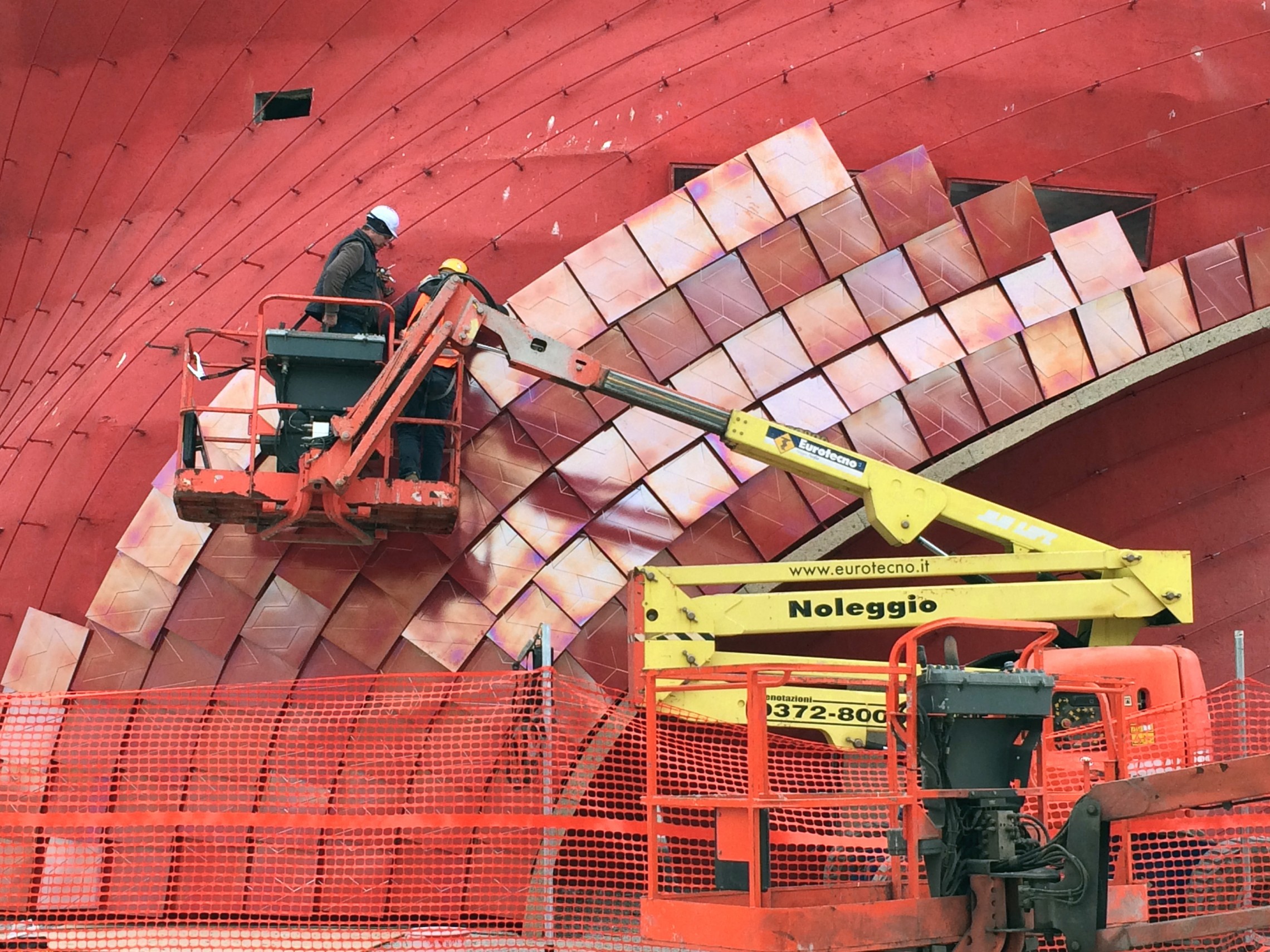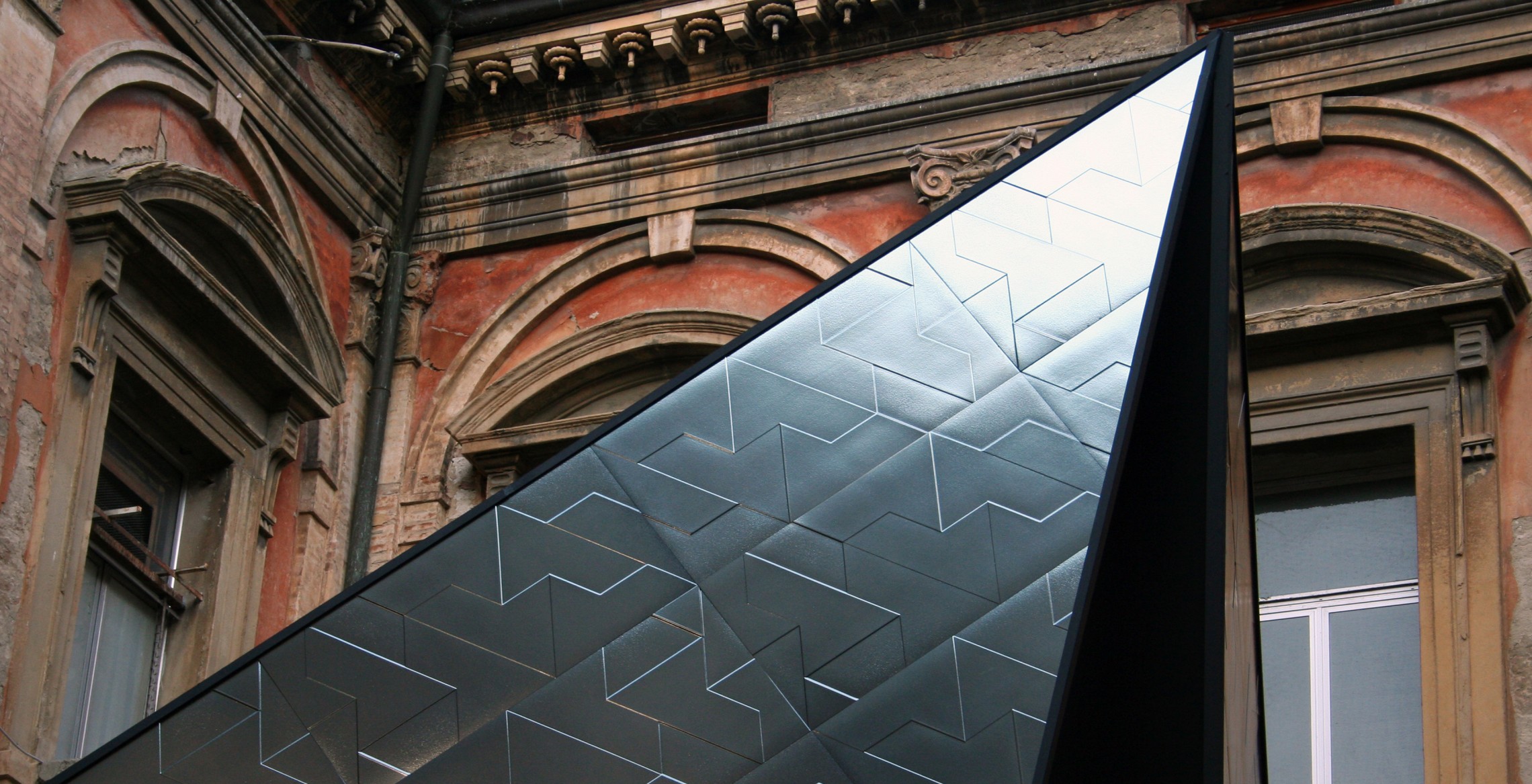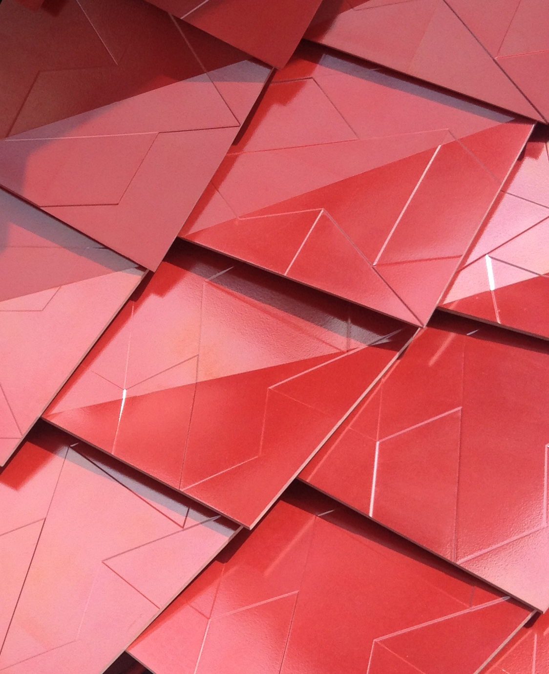 The Fractile tile series designed for Casalgrande Padana combines state-of-the-art technology with legendary Italian ceramic technique to produce a revolutionary material. The geometric tile not only creates an expressive pattern that can be applied to a variety of surfaces, it also possesses surprising sustainable properties. The technology of Bios Self Cleaning ceramics allows the slabs to be self-cleaning and also reduces environmental pollution by purifying the air.