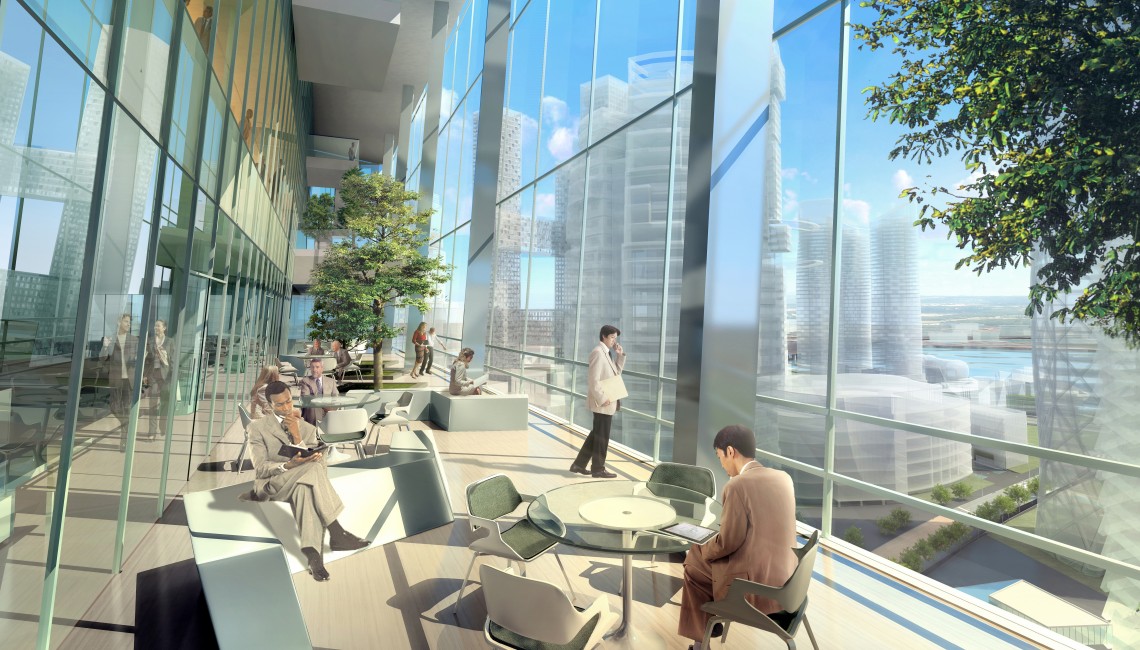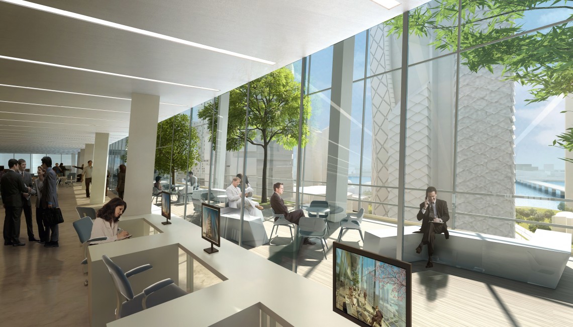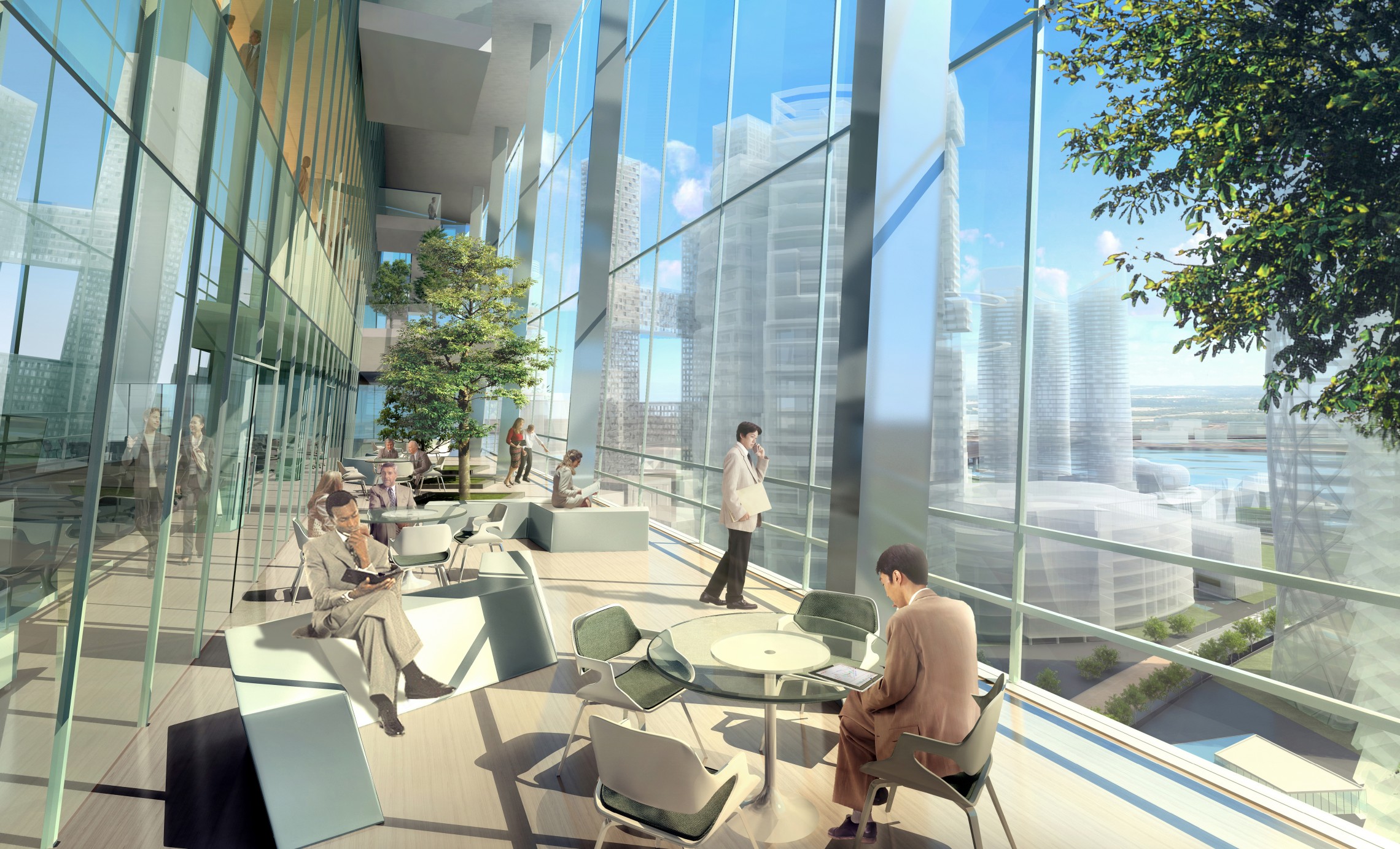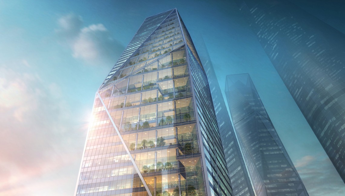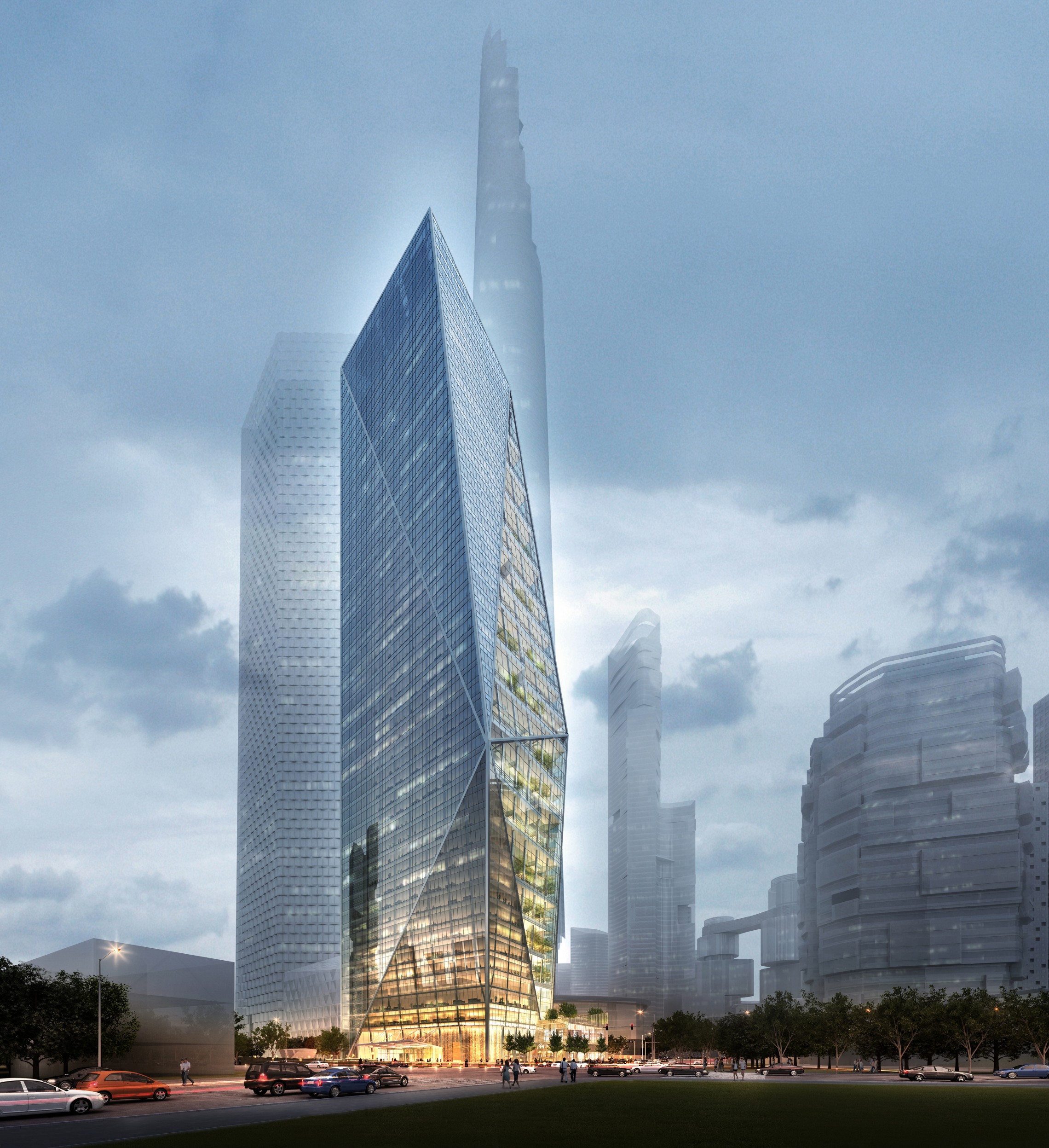 Inspired by traditional Korean paper lanterns, the façade is faceted with multiple planes that reflect the sky and earth and capture light from its differing angles. Three-story vertical winter gardens on the south and west façades provide users with access to natural ventilation and planted gardens at each of the 38 office floors. The gardens offer cozy, intimate environments, as well as spacious, transparent spaces. The gardens not only act as open, park space within the building for the tenants but also as a buffer to reduce heat gain and allow the building to function more sustainably.