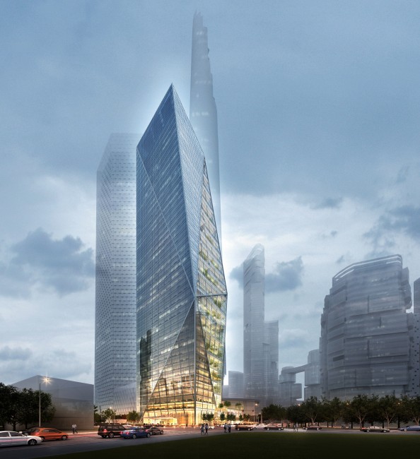The Harmony Tower design concept is for a 46-story, sustainable office high-rise in the Yongsan International Business District (YIBD) redevelopment, in which Studio Libeskind did a masterplan.