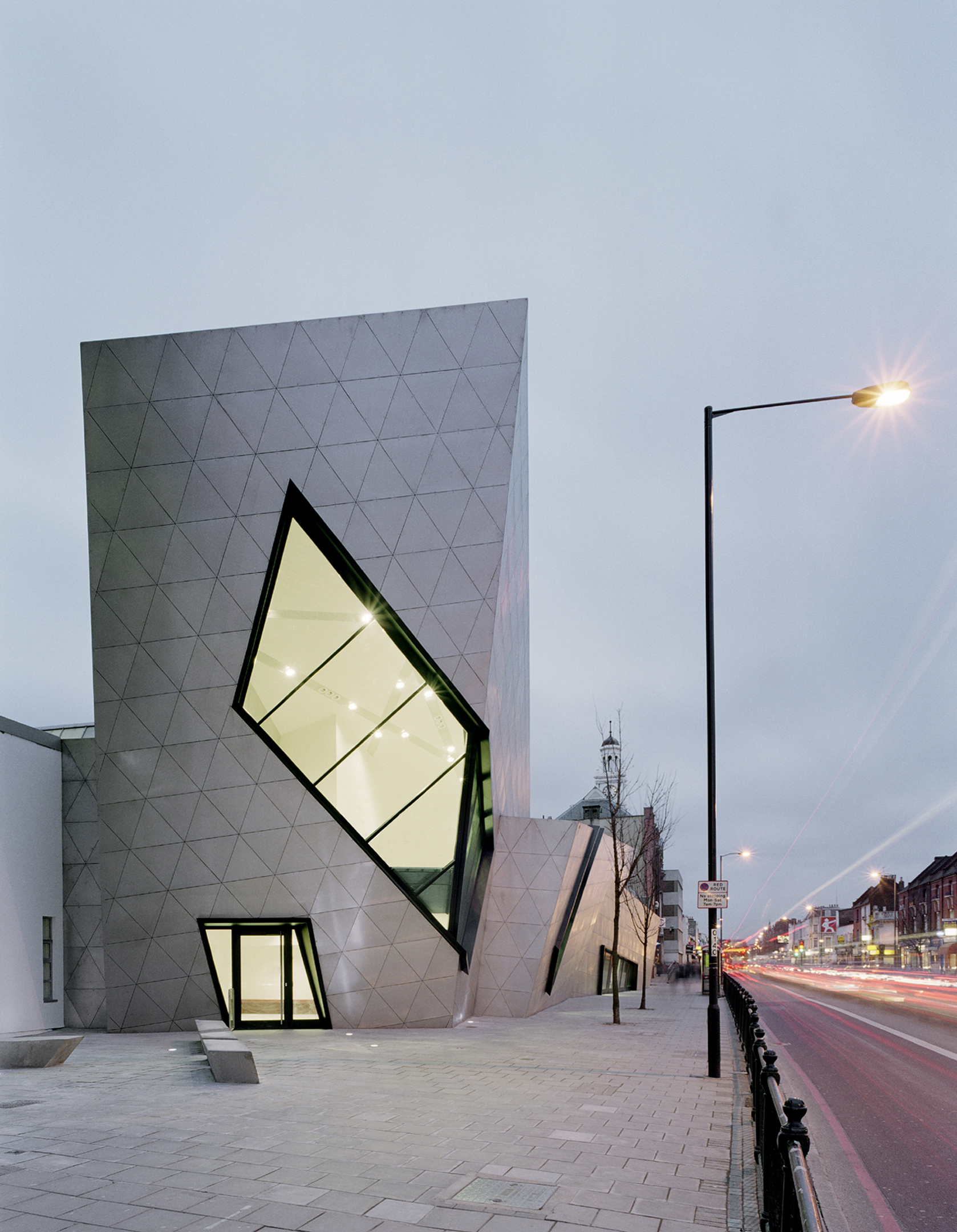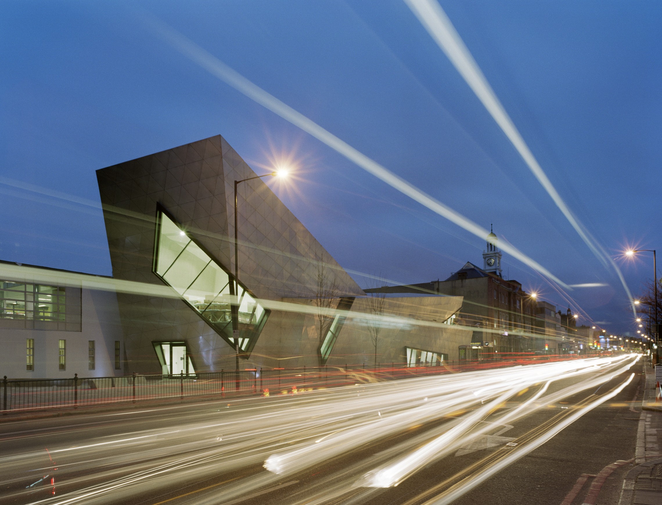 “At £3m all in, this is not an expensive building. What it has that distinguishes it from what a client might ordinarily expect for that money is great presence… When you visit the area, you immediately realise that Libeskind’s explosive building acts not only as a junction box for the university but as a landmark for the entire street.” –Jonathan Glancey, The Guardian (February 2004)