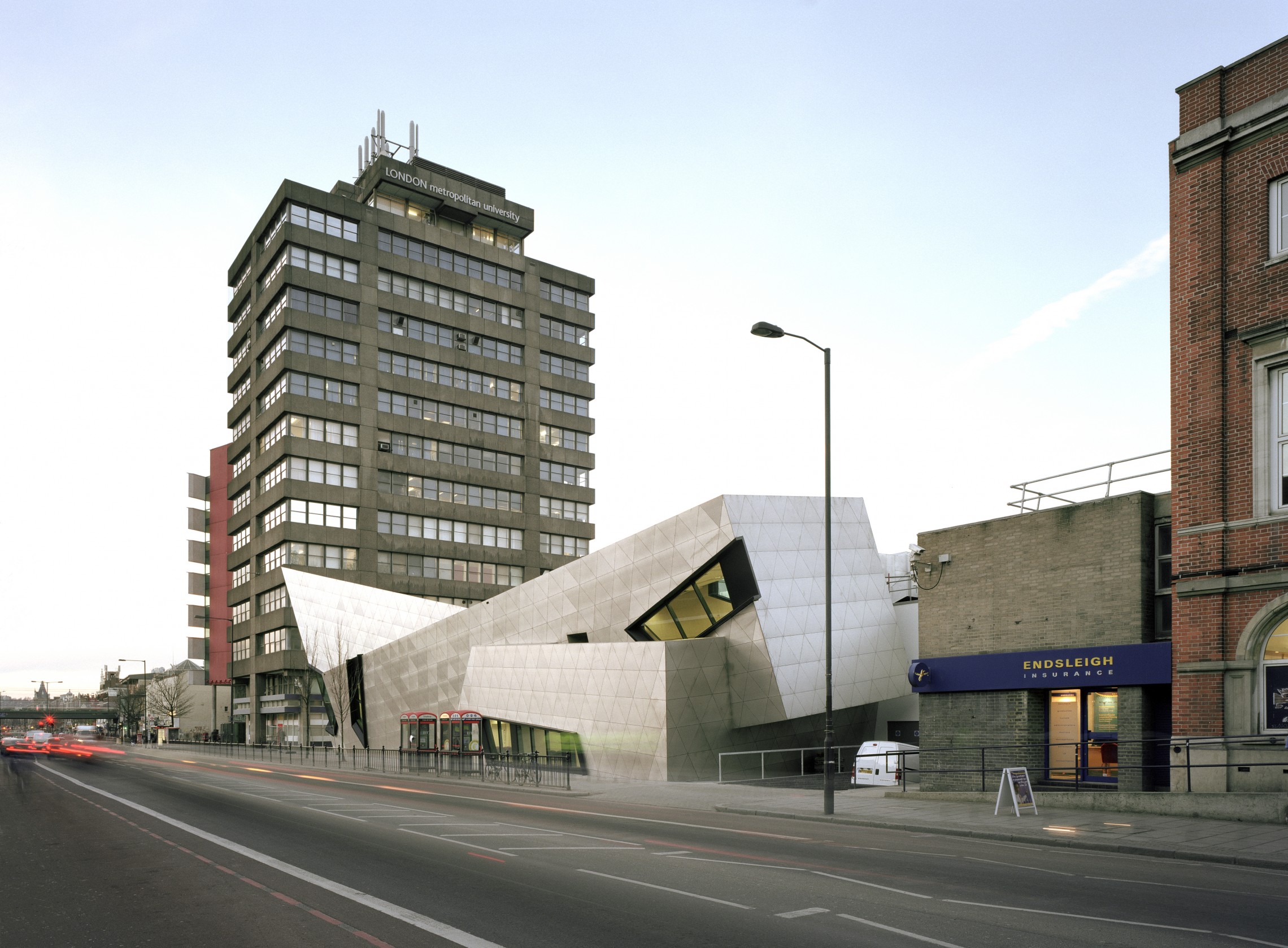 The Graduate Student Centre for the London Metropolitan University is a striking addition to the bustling block on London’s Holloway Road.