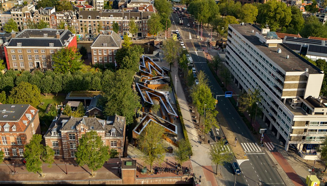 “In a refined way, the building is very grand, present and monumental from some points of view, but from other points of view, restrained, sometimes even absent and actually always refined. Despite its physically modest size, the impact of this project reaches far beyond the city limits and is not only for Amsterdam and its citizens, but also provides a space for encounter, reflection and education. This is Architecture with a big ‘A’.” – excerpt from Arcam Jury