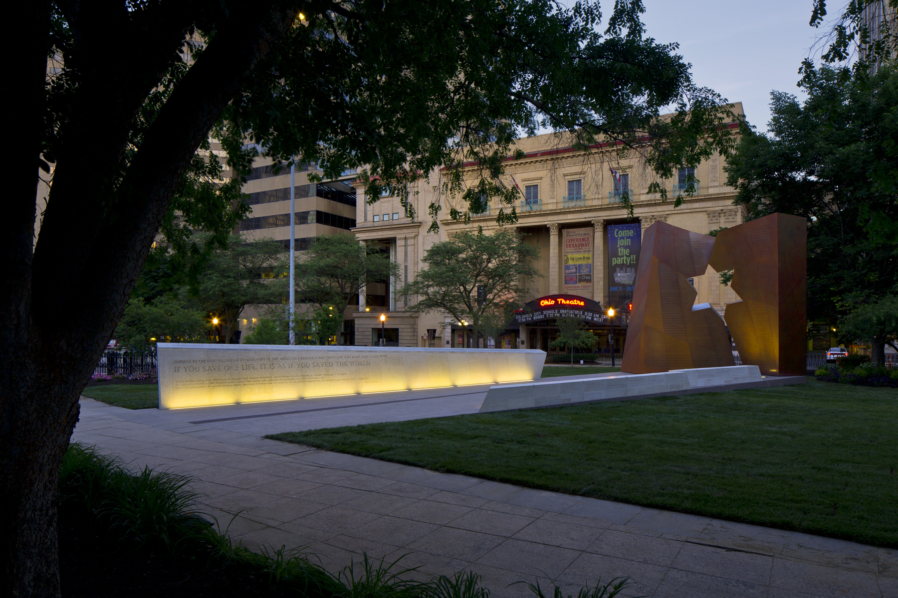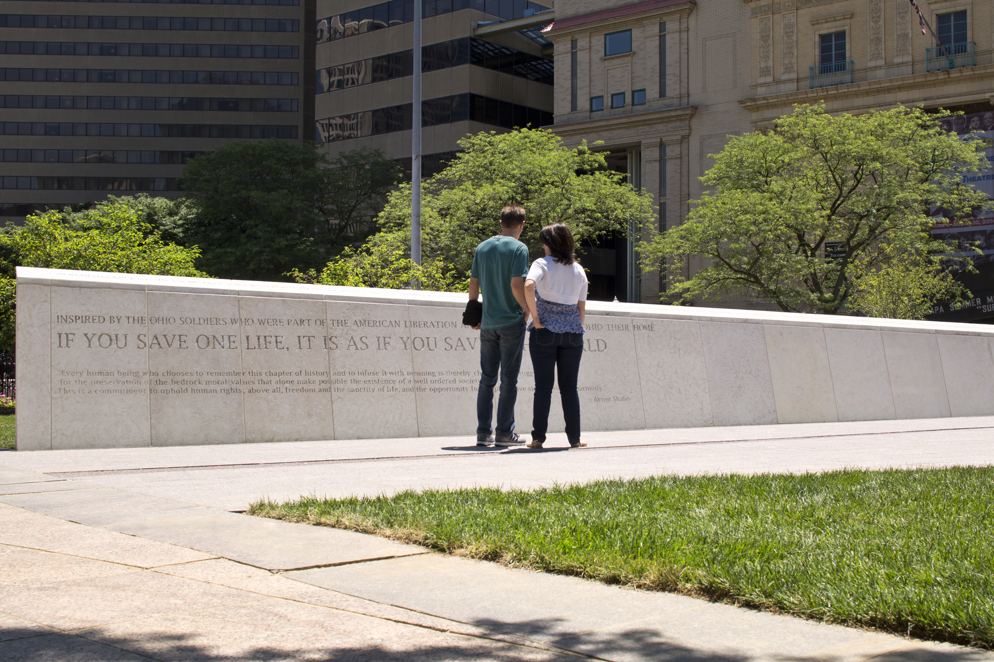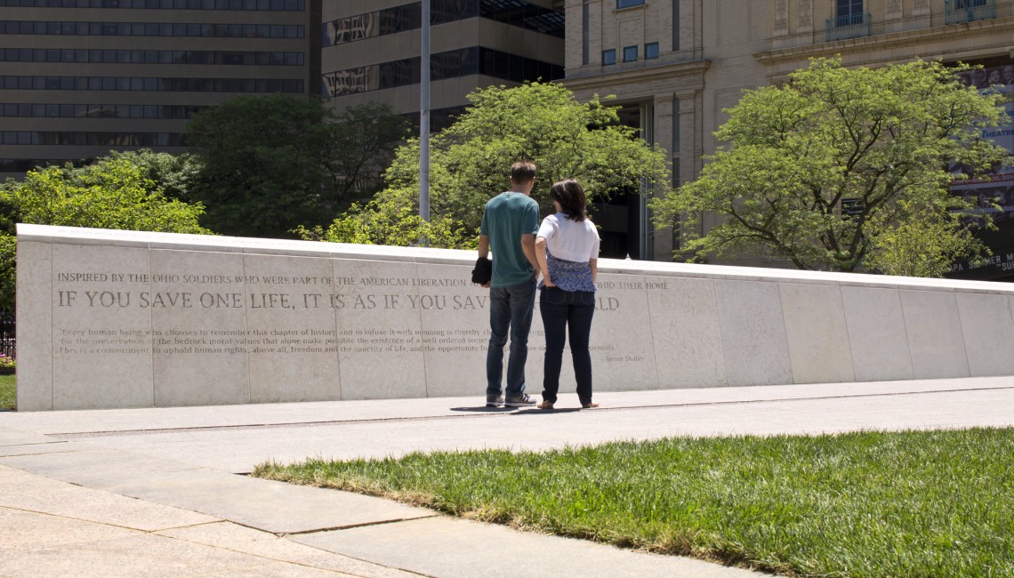 The Ohio Holocaust and Liberators Memorial is a welcome place for reflection on public ground. Upon one of its stone walls, this line honoring the camp liberators is engraved: “If you save one life, it is as if you saved the world.”