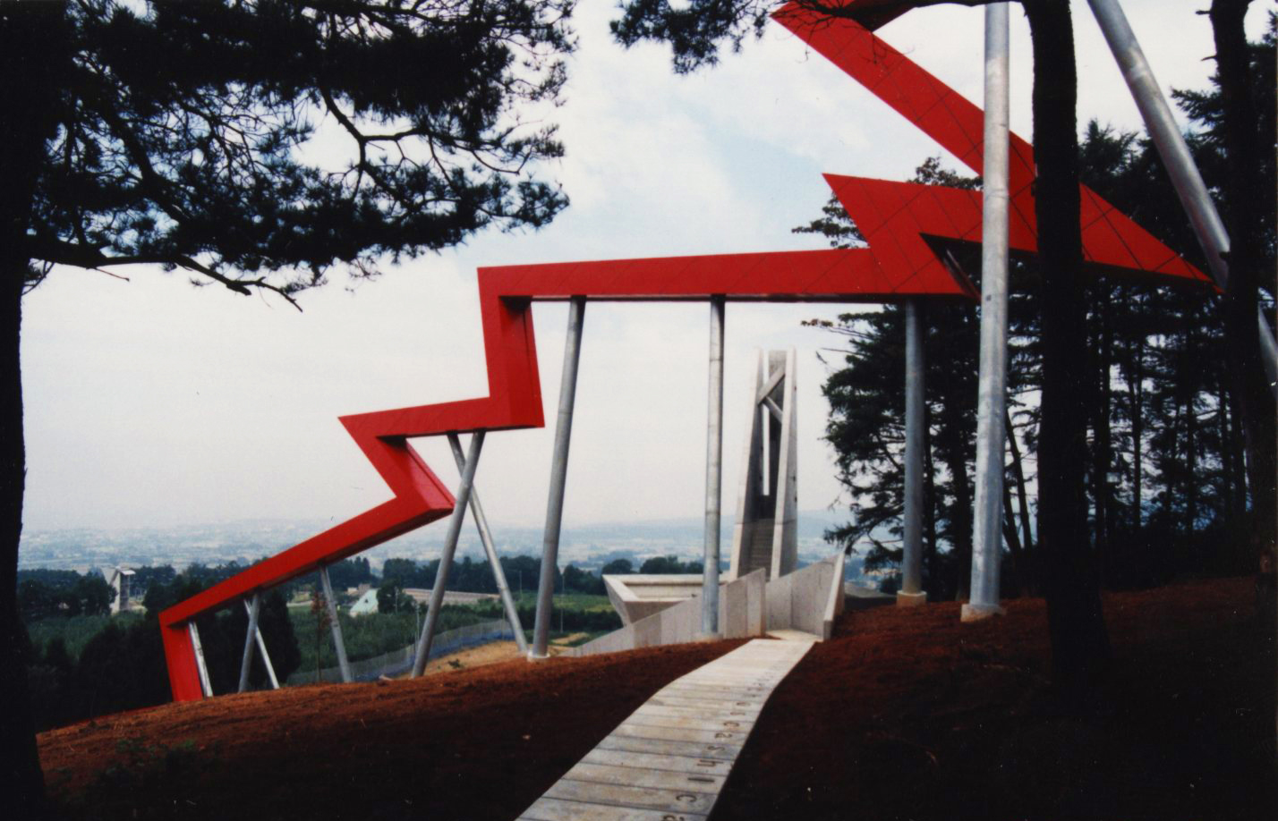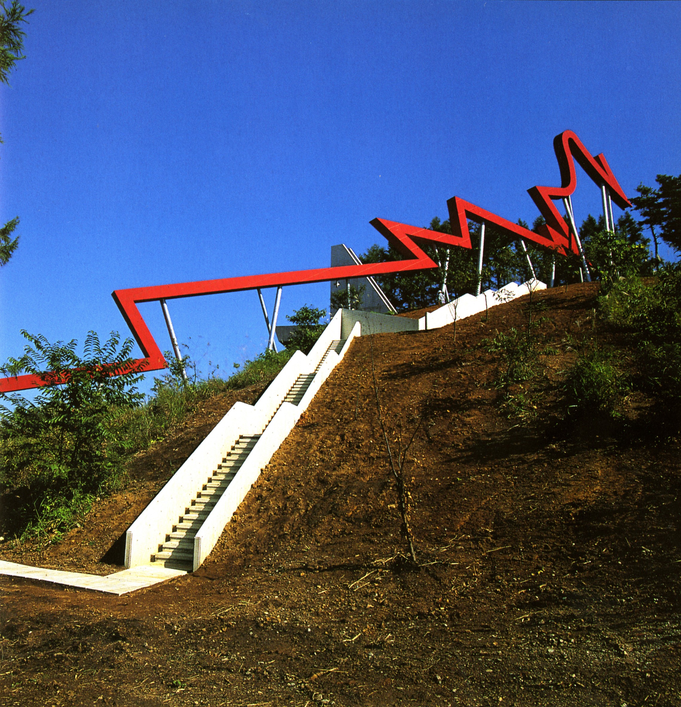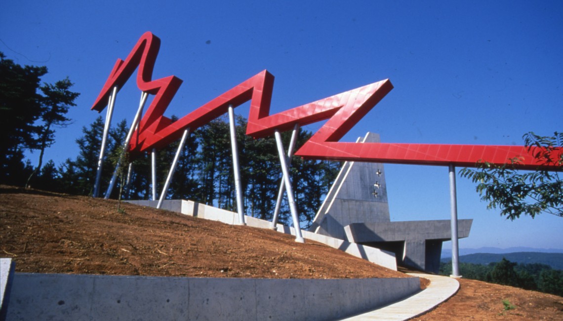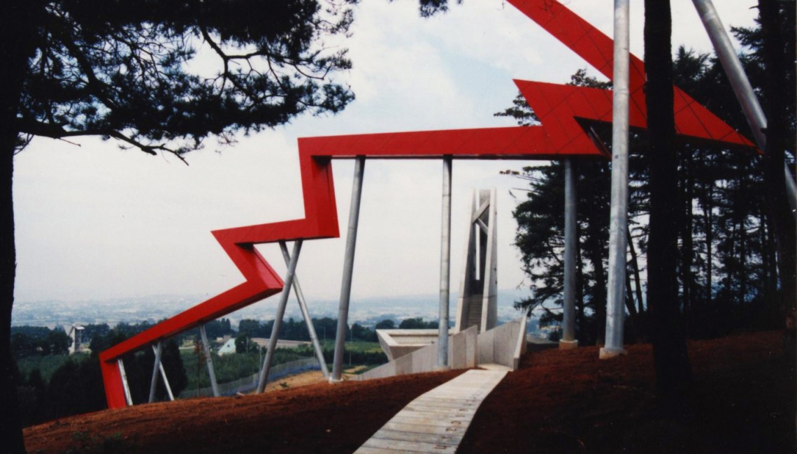 Outside Line, an installation situated in the Sports Park near the city of Uozu, Japan, was proposed as a place to contemplate the relationship between man and nature. The project was inspired by the search for a contemporary understanding of space and light, and its design was informed by a precisely determined web of conceptual, topographical relationships between objects and space, eye and mind.