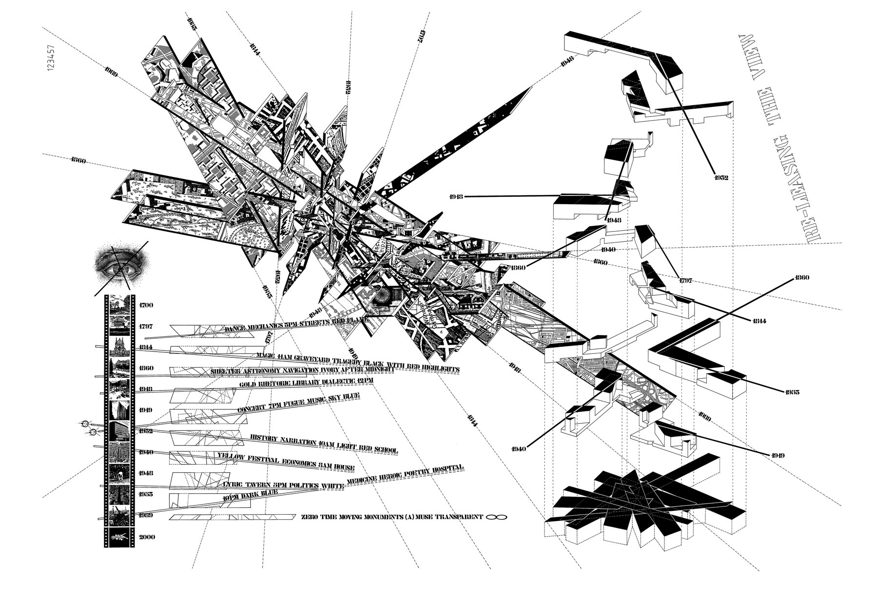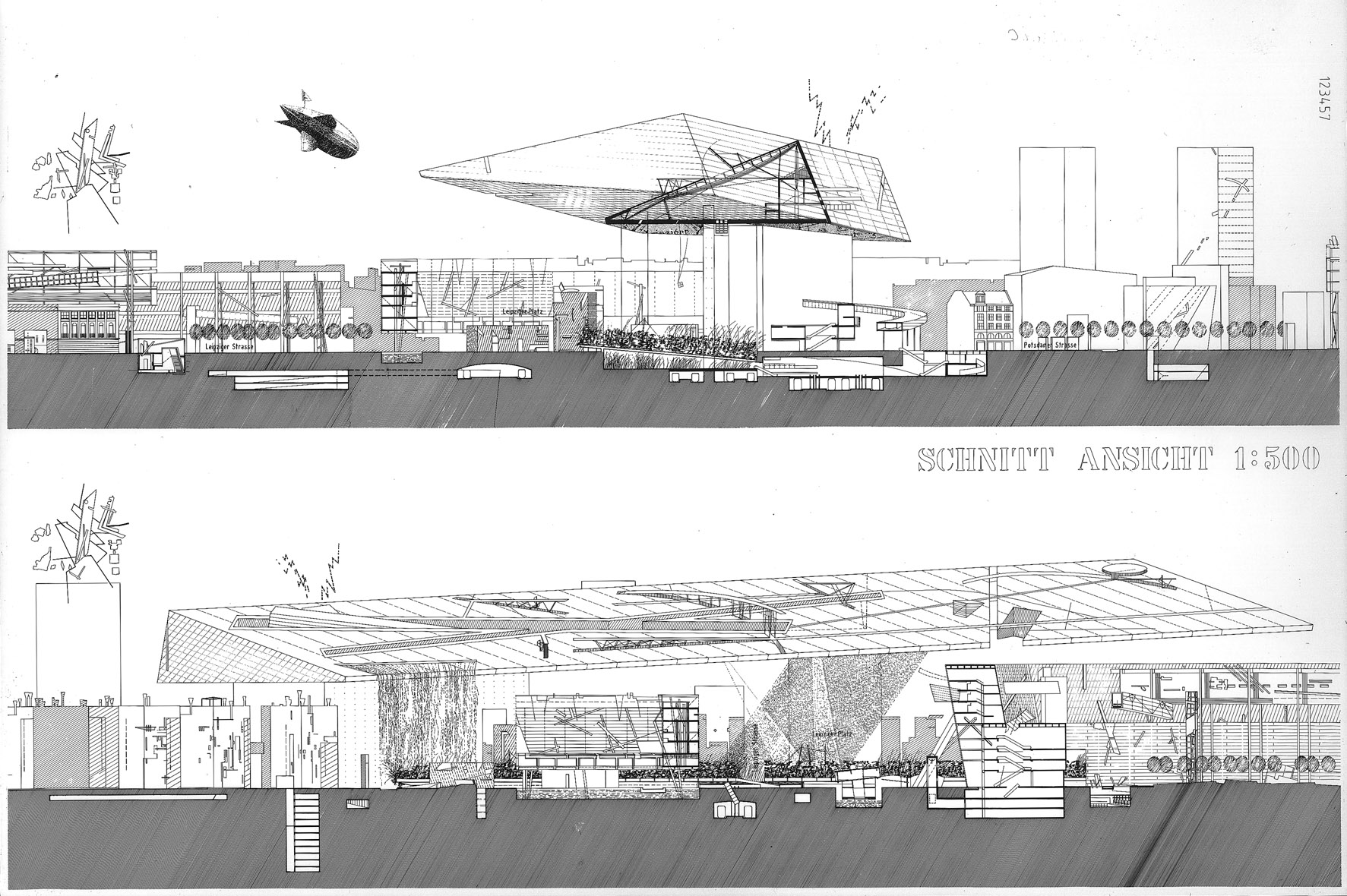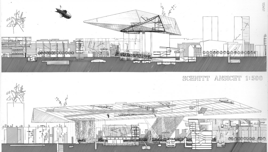 For the competition, Libeskind chose not to see the desolate space as a tabula rasa, but as a dialectic space for confronting the past and re-imaging the future. Prevailing attitudes at the time sought to rebuild the area along more traditional lines, yet in the spirit of optimism, Libeskind sued for a more critical exploration of the relationships that would underpin the 21st-century metropolis.