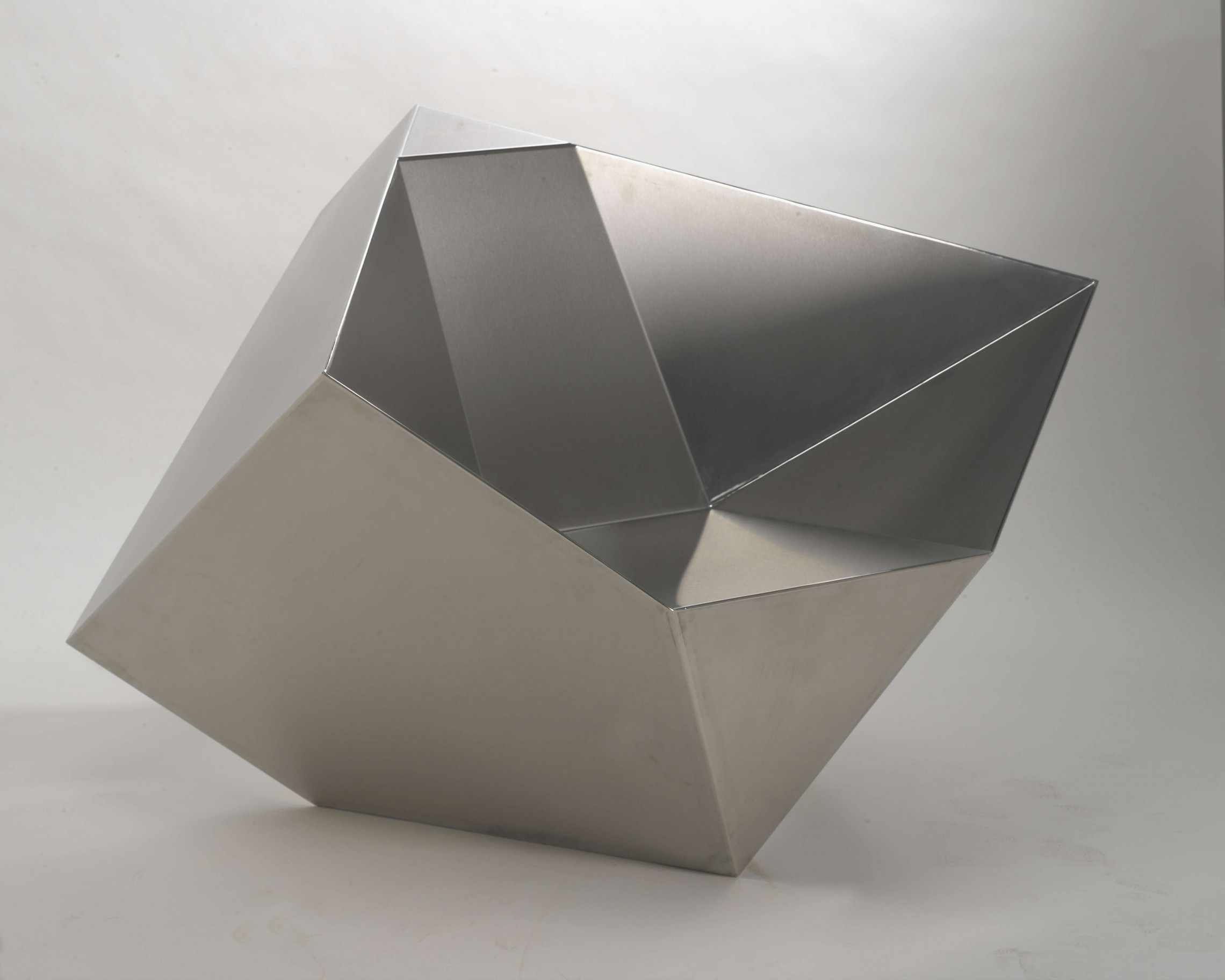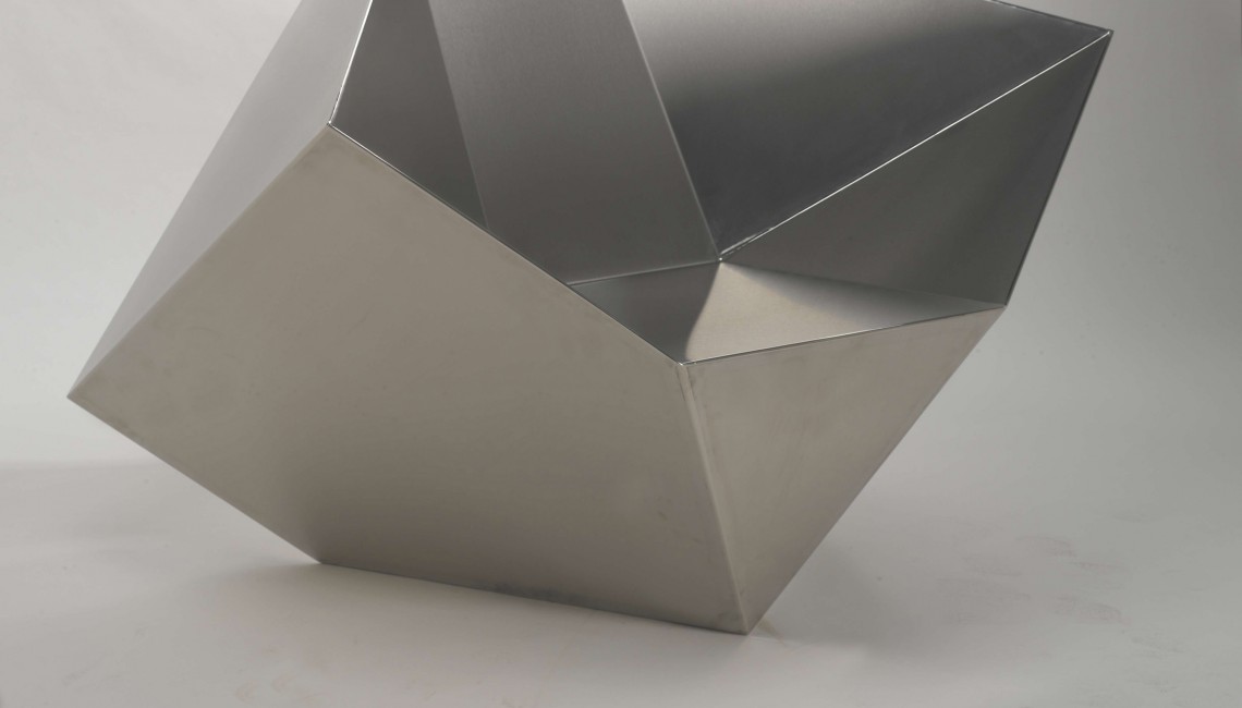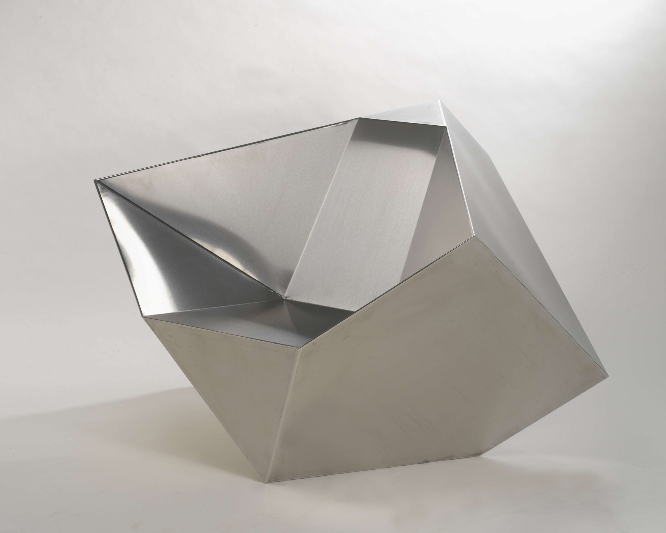 The contemporary, multi-faceted Spirit House Chair was one Libeskind’s first forays into the world of furniture. The chair is constructed entirely of 14 gauge stainless steel with a brushed finish, weighing in at 180 lbs. It is designed to be oriented in five different positions and can be used as a side-table. Each chair takes 40 hours of labor to complete. As a special finishing touch, each chair will have Libeskind’s signature etched onto it.