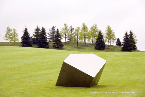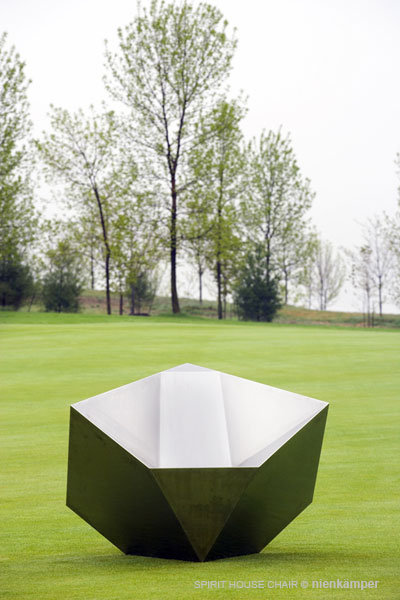 The chair is named for the space at the heart of the Michael Lee-Chin Crystal called the Spirit House, where the structural support beams unite to form an open space that will be filled with a soundscape reflecting various aspects of the Museum. Thirteen Spirit House Chairs reside on Level 1 of the Spirit House, used by visitors as a place of contemplation and reflection, three are placed at the front entrance to the Lee-Chin Crystal and two are on display in the new ROM Museum Store.