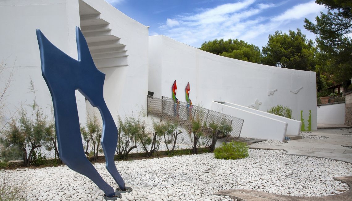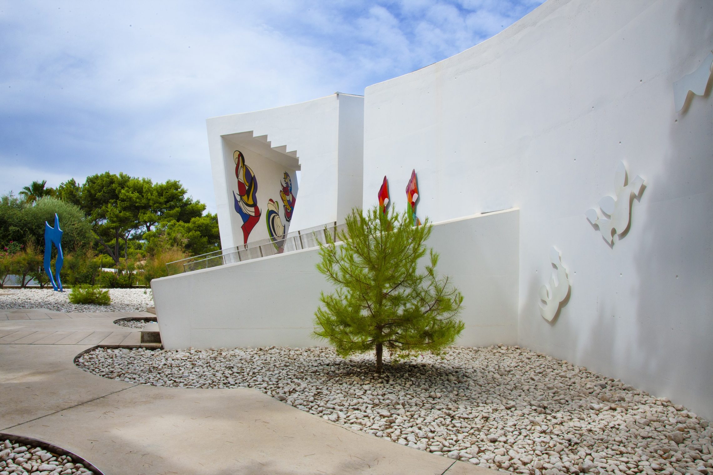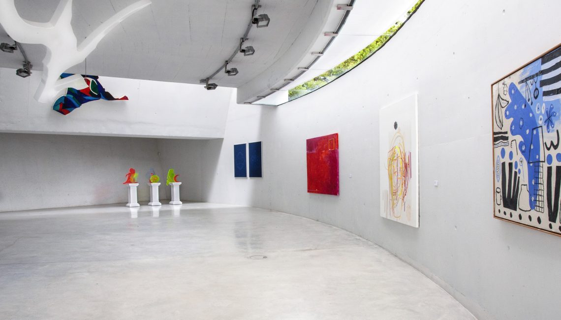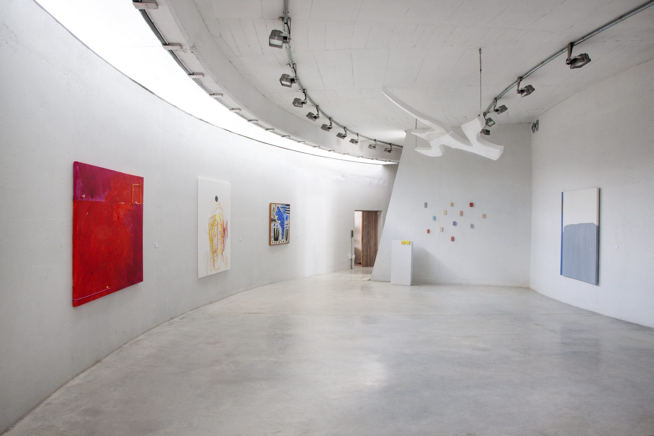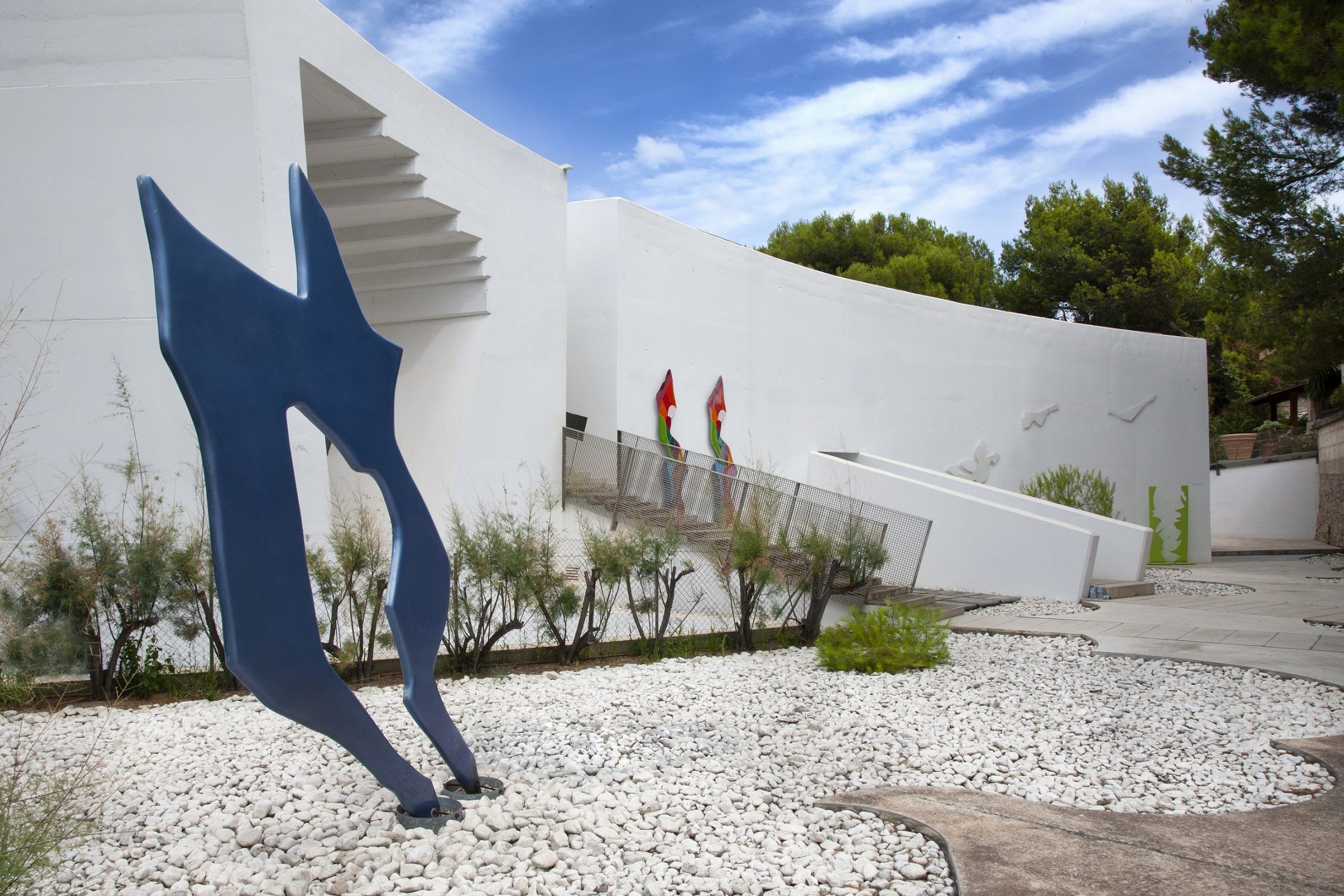 The Studio takes the form of a concrete arc that is cut through with a pair of stairs: one leading up to a roof deck with spectacular views of the sea; the other down from a stone and hardscaped garden that slopes into the ground-floor gallery. The roof holds large scale sculptures, which can be seen from afar. The building houses exhibition spaces, working quarters and a dramatic landscaped garden.