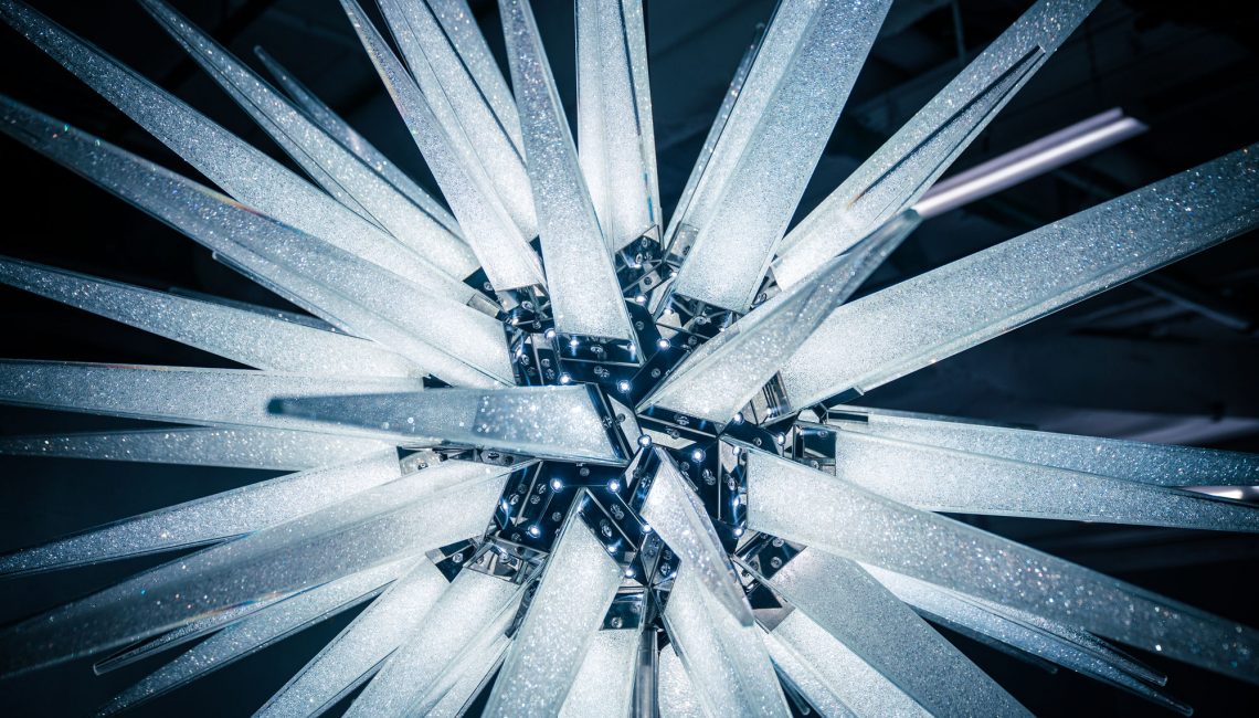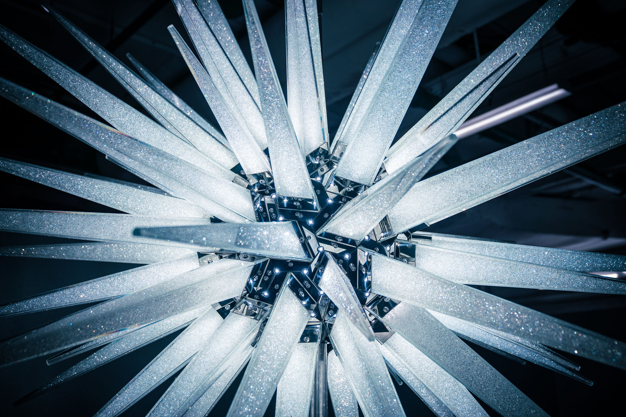 Libeskind’s Star is a brilliant showcase of Swarovski’s 120-year heritage of turning light into delight. The 900-pound star is 9-foot 4-inches in diameter and features 70 spikes covered in 3 million Swarovski crystals, harnessing the company’s innovative crystal technology and mastery of the refraction of light in a dazzling, three-dimensional structure. The dramatic architectural lines push through space, bursting with dynamism in aradiant reflection of Libeskind’s signature aesthetic.