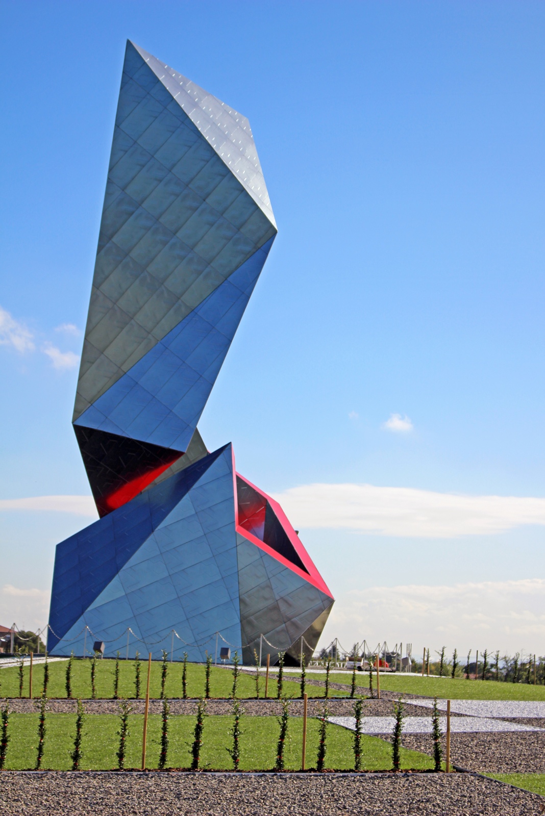 Installed near the Casalgrande Padana production facility on two roundabouts situated on the Pedemontana route linking Casalgrande and Sassuolo, the two installations make up a monumental structure of notable architectural merit and symbolic value, creating a sort of “East Access Door” to the Emilian ceramics district.