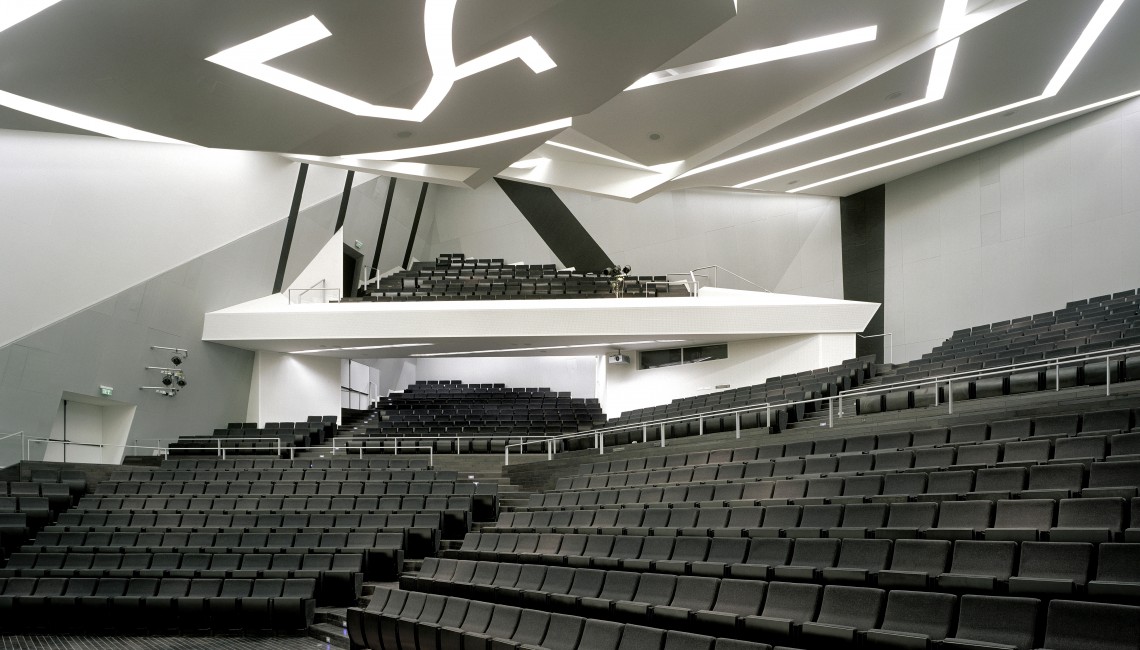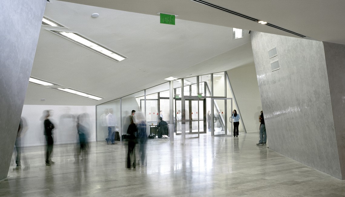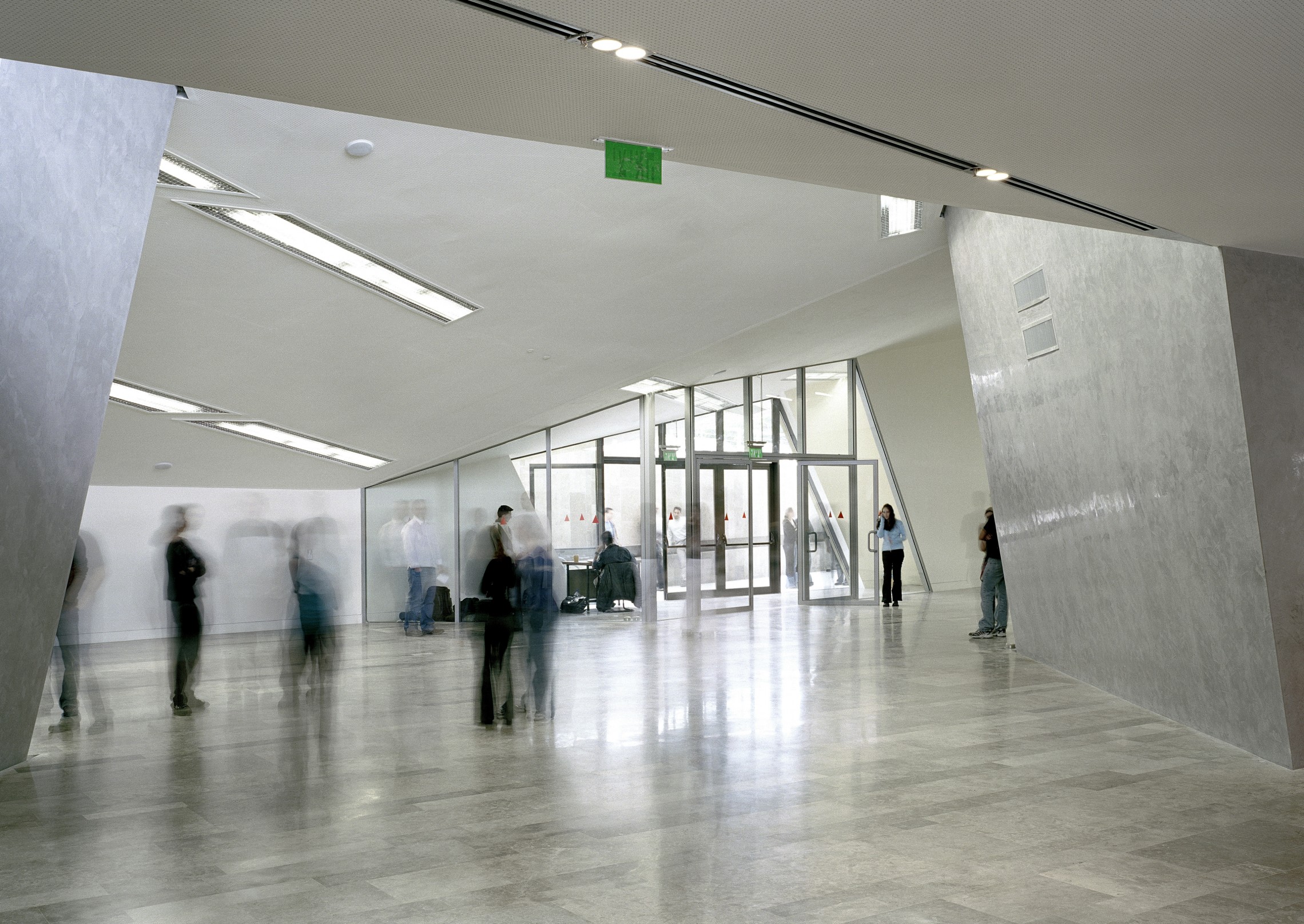 “Another bravura performance from Libeskind brings scale, humanity and sense of new possibilities to an otherwise workaday university campus. Clearly built to a budget, the building makes a virtue of stark surfaces and uncluttered interiors, and a simple programme—a convention centre—is imbued with enigma and a sense of the numinous.” —RIBA, Architects’ Journal, June 2006