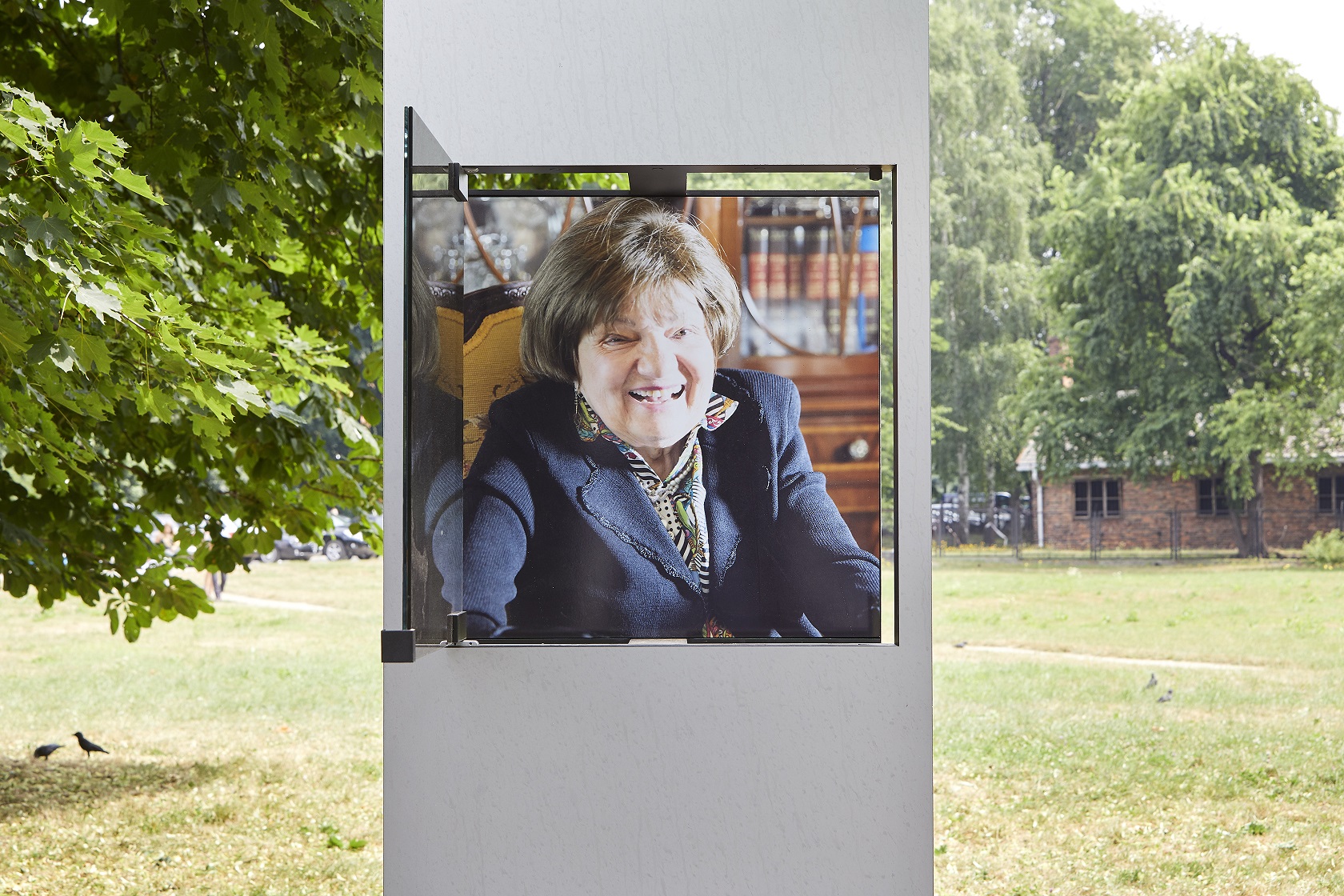 Through the Lens of Faith is an outdoor installation designed in association with the Amud Aish Memorial Museum that is installed at the Auschwitz-Birkenau State Museum in Oswiecim, Poland. The temporary installation is composed of 21 color portraits taken by Caryl Englander of Jewish, Polish Catholic and Sinti survivors of the camp. The photographs were taken over a course of three years. Caryl Englander selected her subjects from survivor networks associated with the Amud Aish Memorial Museum in Brooklyn. Englander captures her subjects intimately, in their homes, many look directly into the lens—often with their sleeve rolled up to reveal the infamous serial number that was tattooed on prisoners at Auschwitz and the sub-camps—and smiling into the camera.