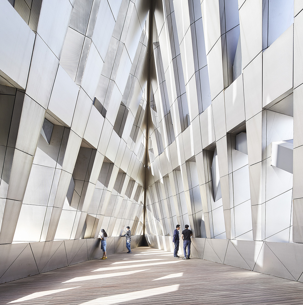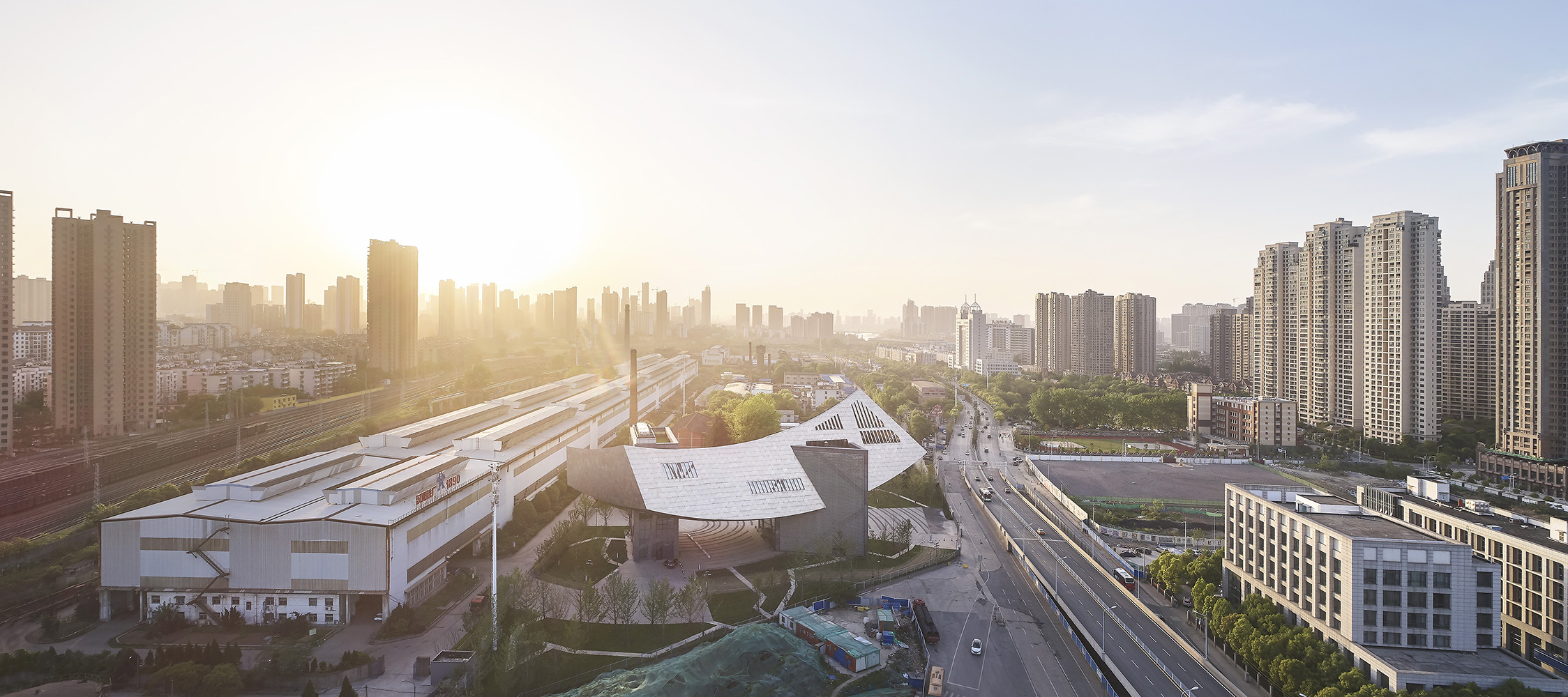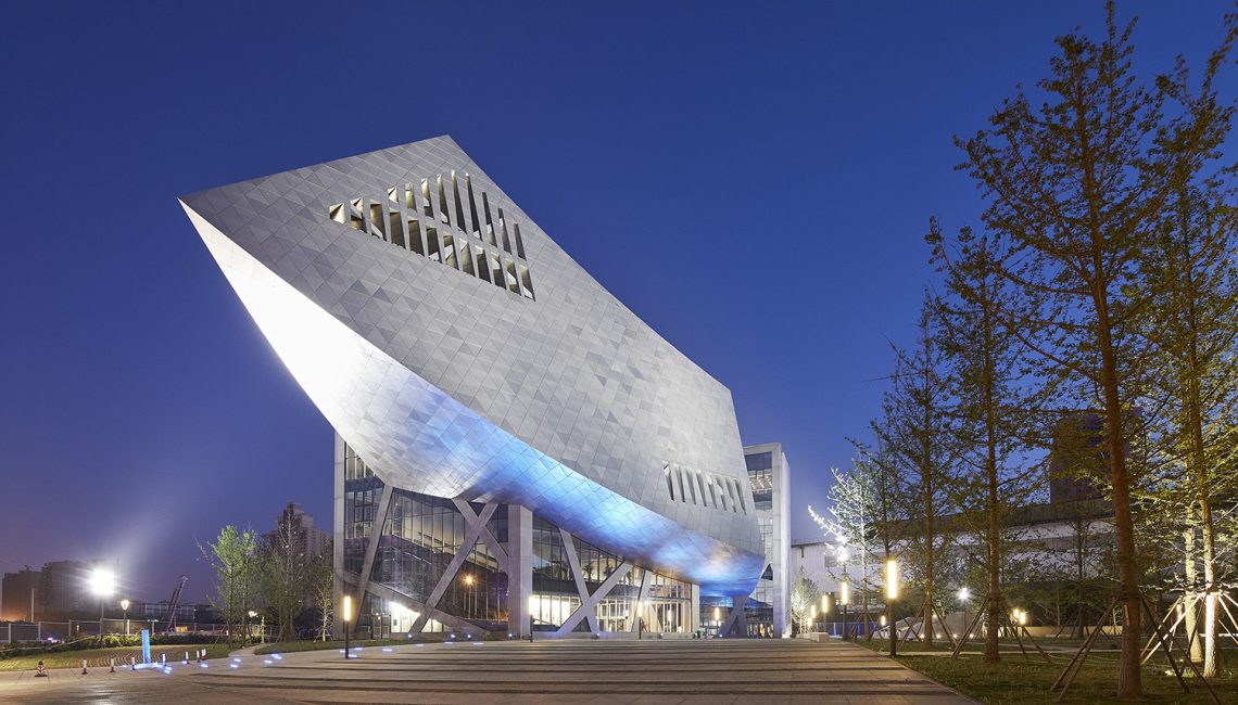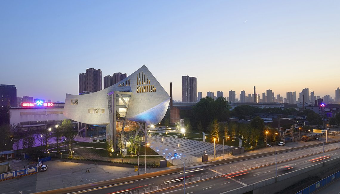 Located at the site of Wuhan’s old steelworks, Studio Libeskind’s design is a sweeping ark-like structure that is hoisted above the surrounding plaza by two steel and glass structures. The gravity defying form is clad in geometric steel panels, reminiscent of the industries’ past. Once inside, visitors climb the main staircase that connects to the exhibition spaces above where they are divided into four themes about the accomplishments and ideas surrounding the life of Zhang Zhidong. The exhibition also includes various collaborations with local artists who explore aspects of the differing themes through installations and interactive works of art.