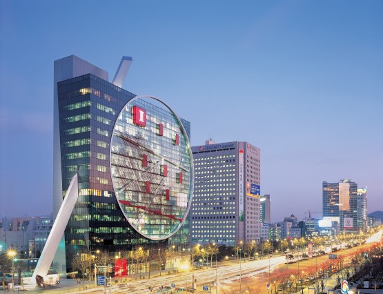 Studio Libeskind designed the bold façade of the new Hyundai Development Company headquarters located in Seoul, South Korea, to integrate the building with a public plaza and below-grade spaces, as well as serve future development on the site. A gigantic, 203-foot ring, encompassing red and white geometric forms, and an inclined metal vector was superimposed onto the existing modern office tower, transforming the main façade and plaza areas. The façade also includes working balconies and louvers. The design explores the interplay of light and shadow, varying light conditions throughout the year and creating a meditative environment for reflection. The project…
