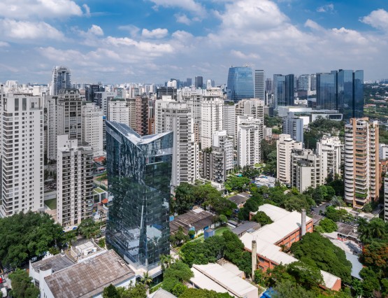 Vitra is a luminous glass-clad, high-rise residential project in the Itaim Bibi district of São Paulo, near a number of the city’s main thoroughfares and to the popular Ibirapuera and Do Povo parks. It is the Studio’s first built project in South America. The bold, sculptural design features a multi-faceted glass façade embedded with balconies that form a geometric pattern across the façade. The building is engaged in a play of transparency and opaqueness: with the progression of the sun, the glass shifts between a perfect mirror of the sky and dynamic São Paulo city life, and a transparent geometric composition. Vitra…