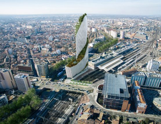 In the historic ‘rose’ city of Toulouse, France the sculpted Occitanie Tower will rise 150 meters above the Canal du Midi in the heart of the city’s business district. Set to be the first skyscraper in the city, the tower’s curvaceous form is interrupted by a spiral of greenery that rises from street level up to the 40th floor. Trees will line the building’s platform and a ribbon of gardens will curl around the glass facade. The tower will include 11,000 square meters of office space, a Hilton hotel, up to 120 apartments, a restaurant with panoramic views, commercial space…