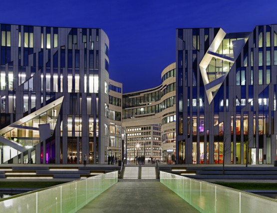 Kö-Bogen, or the `King’s Bow,’ is a LEED Platinum rated large-scale office and retail complex whose sinuous form hugs the point where the Königsallee Boulevard, Düsseldorf’s primary thoroughfare, converges with the newly created Hofgarten promenade. By artfully connecting the city’s central park and historic commercial center—and by expanding public space and inserting landscape elements—Studio Libeskind produced a mixed-use commercial complex that is a dynamic new attraction in the heart of Düsseldorf, Germany. The complex sits on two plots, comprised of two structures—one to the east, the other to the west—separated on the ground by a central pedestrian passageway and joined…
