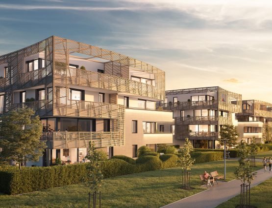 Situated in the thriving Riedberg neighborhood of Frankfurt, seven residential villas create the new Verve development. Each four story building is designed as three intersecting volumes with a naturalistic palette of materials that reflect the character of the surrounding area. Curved wood slatted screens wrap the buildings at different intervals creating an asymmetrical layering, while providing passive solar shading and privacy for each unit. Spacious balconies providing sightlines to the neighboring Kätcheslach Park, and ground-floor units have private garden terraces. The floor plan of each unit is unique and focuses on well-being and energy efficiency. The project concept arrives from…