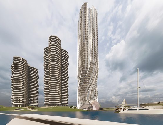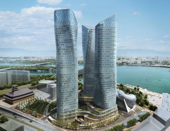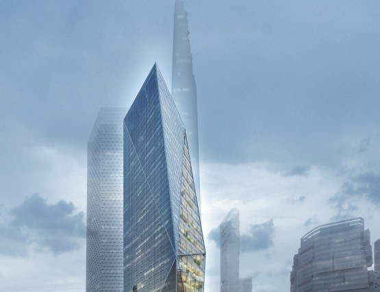 The Dancing Towers design concept is for three 41-story residential towers in the Yongsan International Business District redevelopment, in which Studio Libeskind did a masterplan. The design was inspired by the traditional Korean Buddhist dance of Seung-Moo, where the billowing sleeves of a dancer’s gown are gracefully propelled by her movements. Each tower features a subtle rotation to create a sense of movement in the harmonious composition. The rotation and twists in each tower maximize light, air, and views in the relatively dense configuration. The towers will house approx. 830 middle-income residential units, and retail facilities that include a wedding hall…