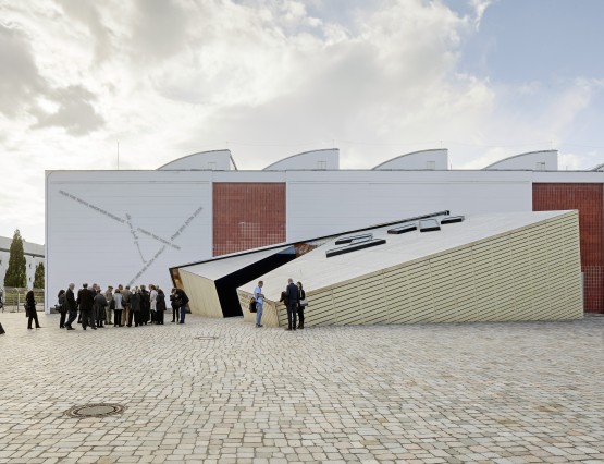 Almost 13 years after Daniel Libeskind’s extension to the Jewish Museum Berlin opened to great acclaim in 2001, the museum unveiled its third collaboration with the architect, the Academy of the Jewish Museum Berlin. The one-floor, 25,000-square-foot building is located on the historic site of the Blumengrossmarkt (flower market) across the street from the Jewish Museum Berlin. Entitled “In-Between Spaces,” the design links the building to the museum’s other structures and open spaces both thematically and structurally. Visitors enter through a downward thrusting cube that intersects with the main rectangular hall, suggestive of the original Kollegienhaus building and the Libeskind-designed…