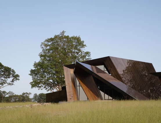 This gleaming, chocolate-colored structure was designed as one folded plan, and takes its name from the number of the planes (18), points (36), and lines (54) that the spiraling ribbon makes as it defines the living space of this 2,000 square foot dwelling. Challenging both traditional and modern notions of “the house in the landscape,” this bold design does not sacrifice itself to its natural setting, but selectively incorporates the elements therein for the enhancement of both house and its Connecticut environs. Studio Libeskind was approached by a client that wanted a mixture of the avant-garde and the cozy. The…