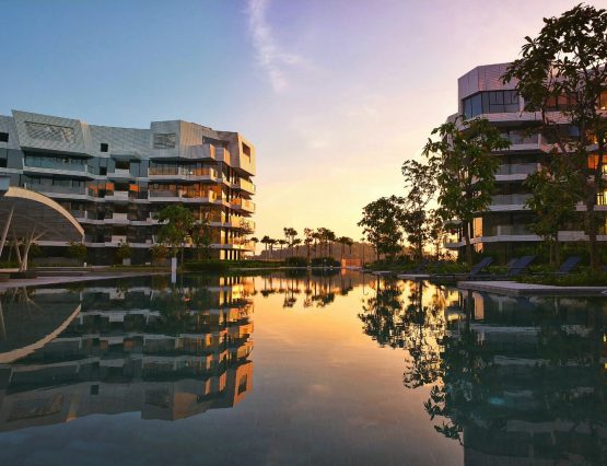 Standing at the entrance to historic Keppel Harbor, six undulating towers and 11 low-rise villa apart­ments offer sustainable living, views and privacy for residents in 1,129 apartments. The artful composition of the sleek curving towers that opened in 2011 affords the delight of visual complexity and provides enough spatial gaps and shifting orientations to multiply the views of the ocean, Sentosa Island, the golf course and Mount Faber. Two distinct typologies of housing—along the waterfront the lower Villa blocks and, set just behind, the towers ranging from 24 to 41 floors—create an airy, light-filled grouping of short and tall towers,…